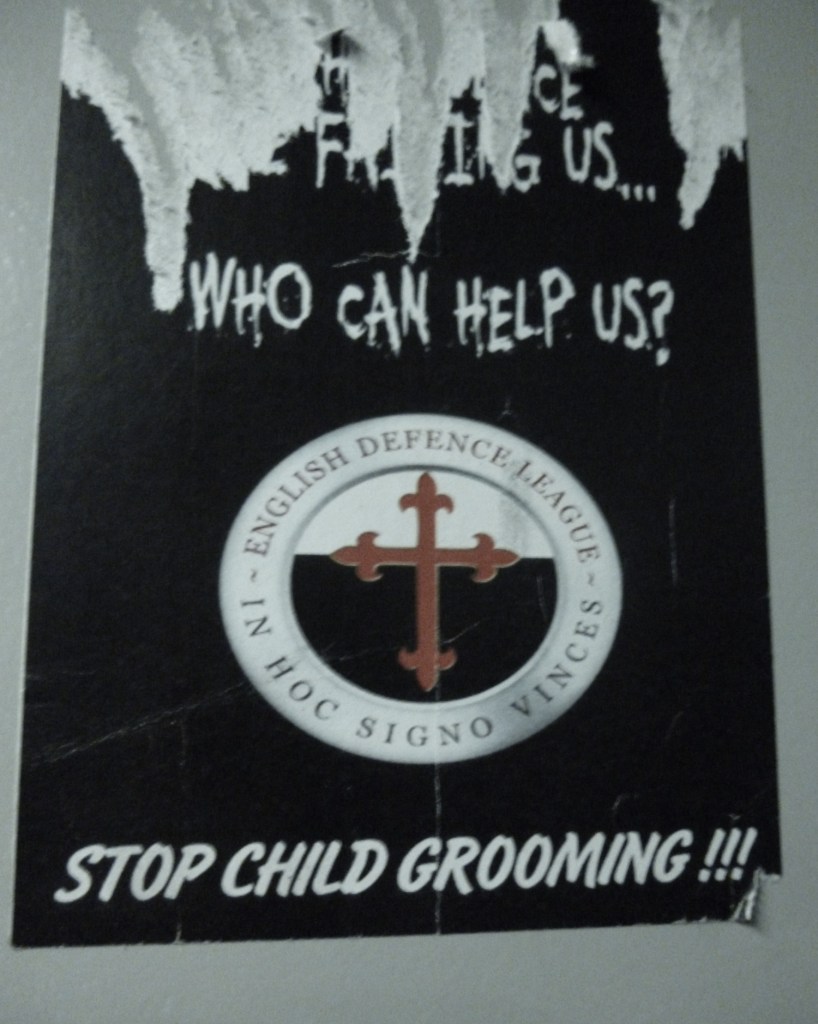 “As I head for the exit at Darton station I noticed stickers all around where the train doors are: English Defence League and Britain First stickers vowing to ‘protect us’ from ‘muslim pedophiles’. A sickly and medieval style to the stickers, and far right party logos. [It] makes my heart sink: “this can only get worse”, it feels to me. ‘The diseased isle’ to [paraphrase] Carl Neville. I wish I knew a solution; as far as I see much anti-fascist protesting isn’t quelling such views. And it’s so bad around here – alienating me from “my own turf”, so-to-speak. Only yesterday I saw a poster on a road sign near Cawthorne saying “Halal Fox”. Stupid/idiotic coupling of presumed ‘lefty’ things, but also dangerously striking subconscious chords – I’m sure.”