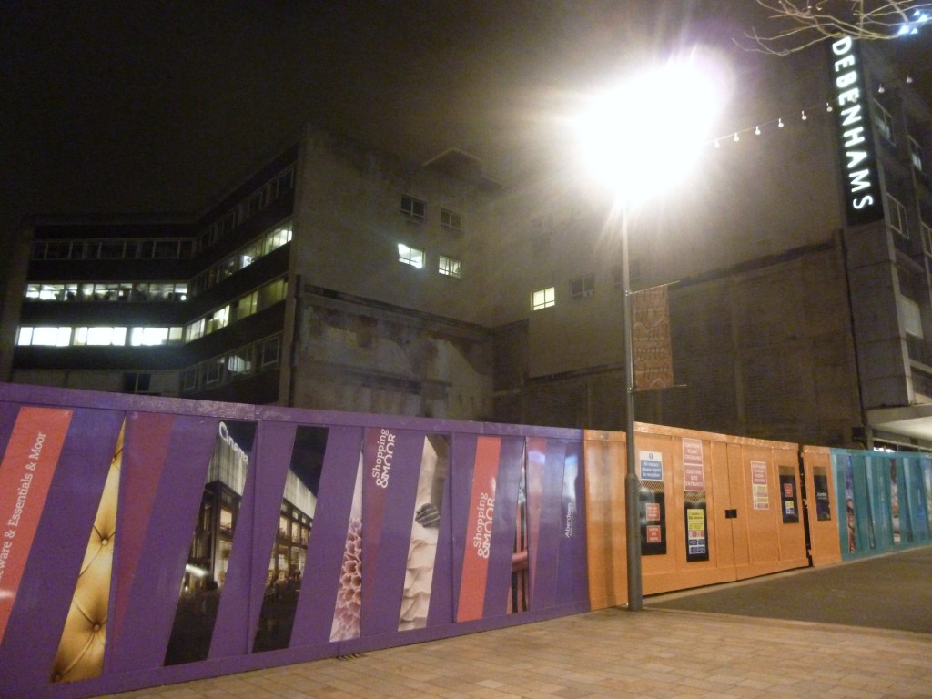 “Chilly, early evening, people gathered [for] slideshow projected onto building on Norfolk Street [Sheffield]. A homeless man, who I saw [asking for spare change] further down towards the station, shouts “yeah, nice pictures and nice music – that’s JUST what we need!” in a sarcastic tone as he walks past. [Even though my own art is featured in the projection] I can’t help thinking “he’s got a point.”
