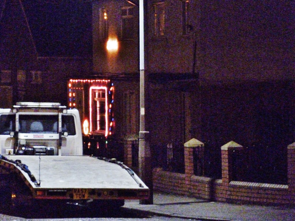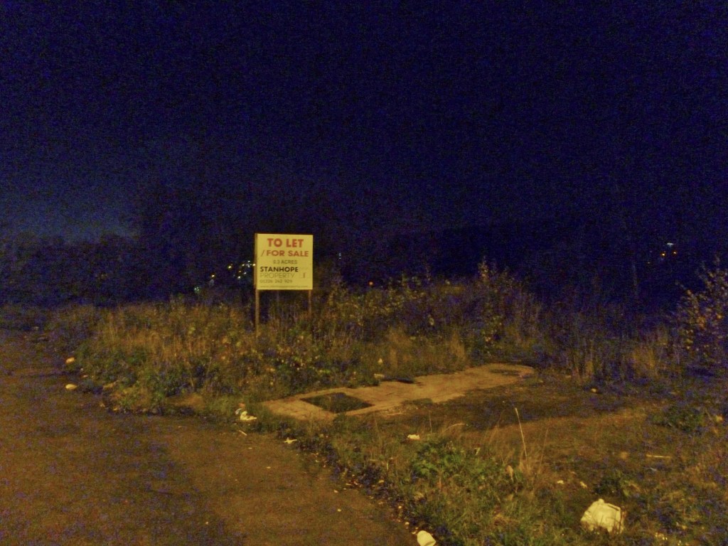 “Enterprise Zone/small industrial park next to junction [37]. Half-finished. Huge mound of excavated soil, overground and sinister-looking in the foggy night. A car pulls up, slowly, next to me, on this dead-end road. Can’t help feeling intimidated due to sinister connotations. However, I noticed they’ve pulled up to eat a chicken-based takeaway. Weekend salt and sugar fixes.”