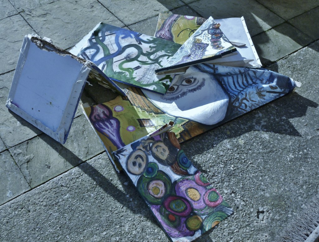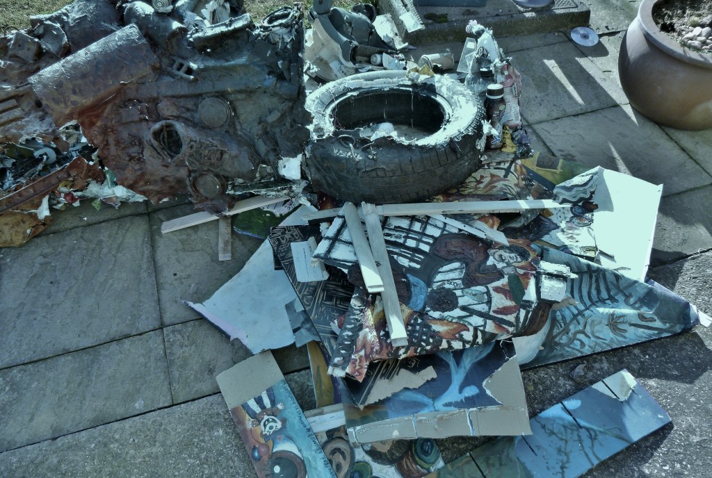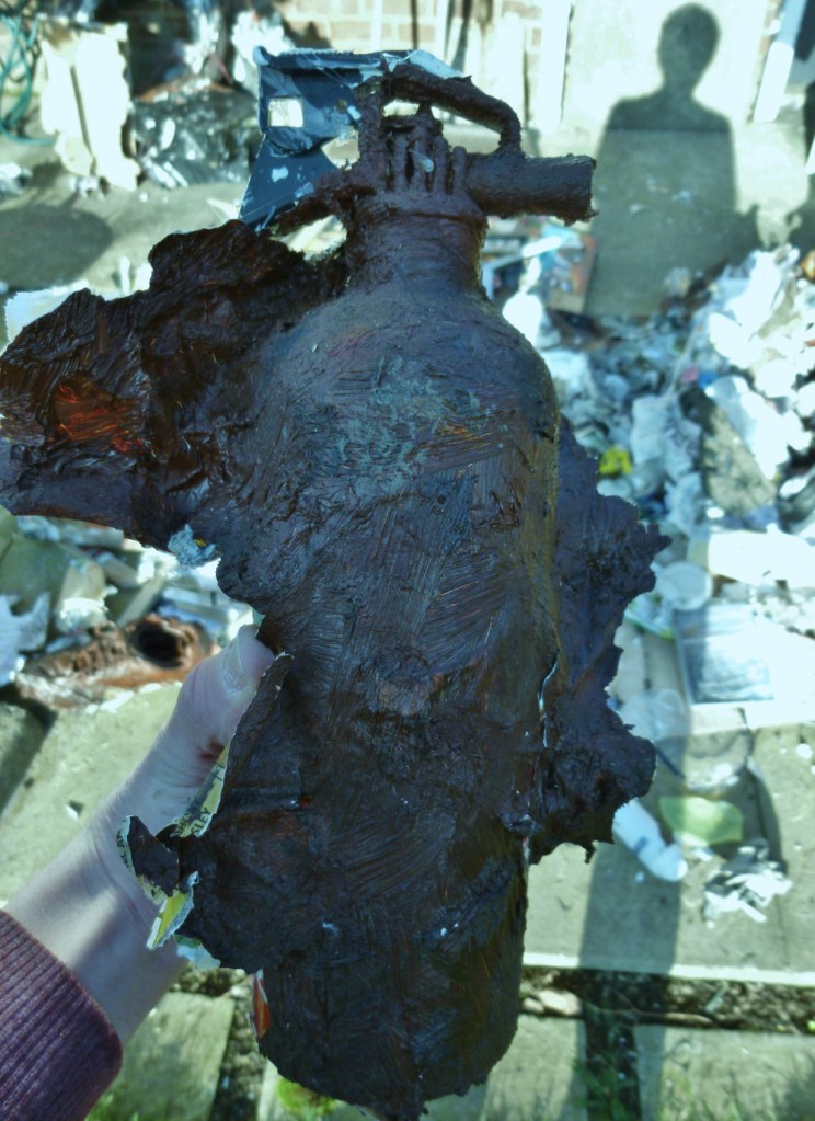 However, perhaps what surprised me the most, and possibly came close to preventing me smashing up any more of the works, was that the paint was still wet on the inside of one of the pieces from 2007. The smell of gloss and oils momentarily taking me back to 2007…even the music I listen to from such times seems lost as if submerged under a mudslide.