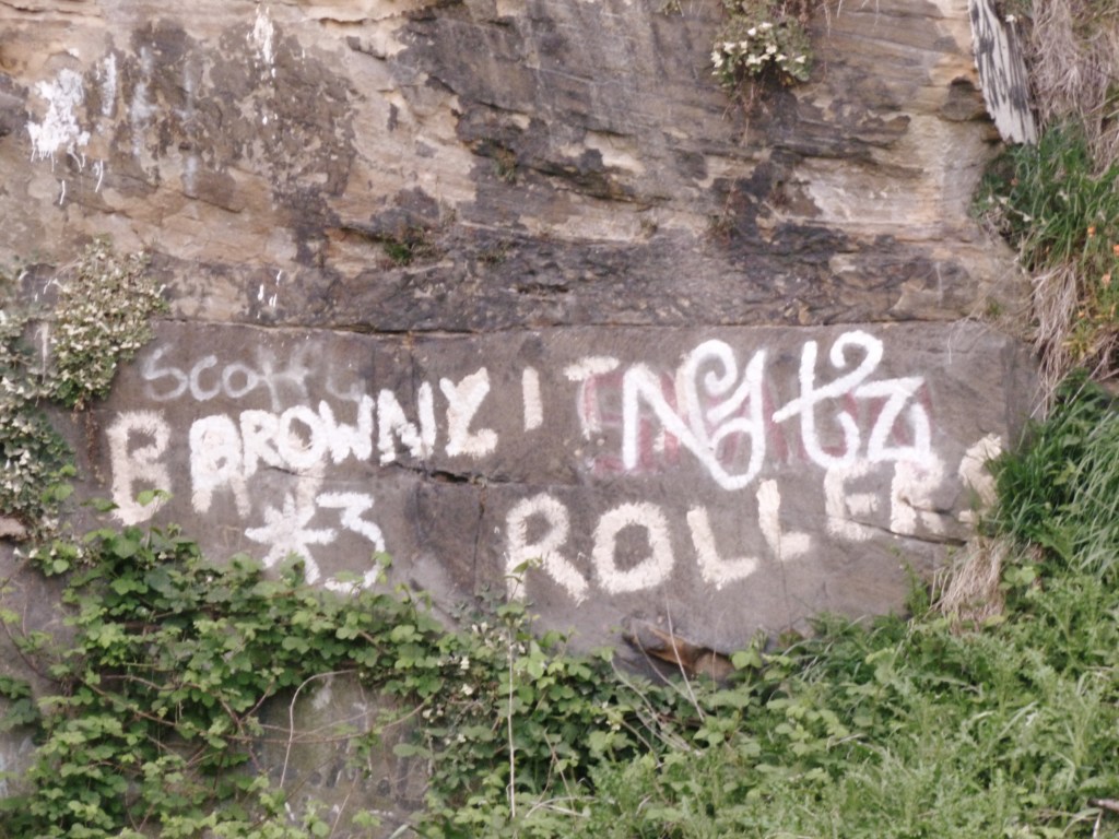 “Memories of May 2000, on the day we left school. Walking through this pathway of gnarled Oak trees, towards an old quarry nicknamed ‘the plantings’, which mimics a mountain top’s rocky outcrop vantage point over the surrounding landscape. All of these things, alongside painted graffiti-covering of the rocks, some of which date back at least to the early 1970’s (full name tags, as if fallen from a raggy old school text book, and ‘Bay City Rollers’ testify to this), well, all of these things are that which the social conditioning of high school, which we were all secretly desperate to escape by then, had blinkered-me-through-fear from even contemplating, never mind discussing, on these obligatory school ending piss-ups that took place up here. Caught between schooled uniformity and anxieties that were too much in their infancy to realise their causation, I vividly remember throwing a full crate of Fosters lager, can by can, into the bushes when my friends were not looking, whilst walking down this very path. Today it would have been the opposite. Maybe I knew my psychological limits better back then…”