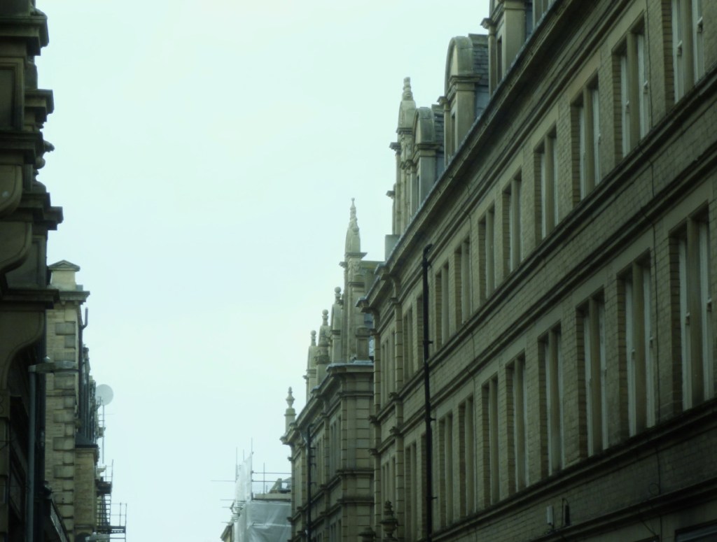 “A middle-aged woman gazes for some time at the homeless man sat in underneath a shop window one of the main shopping streets [Huddersfield], probably due to him not yet having the drained and disheveled look of somebody accustomed to such a life. He’s obviously new to this life, he still has the look of household domestication to him.”