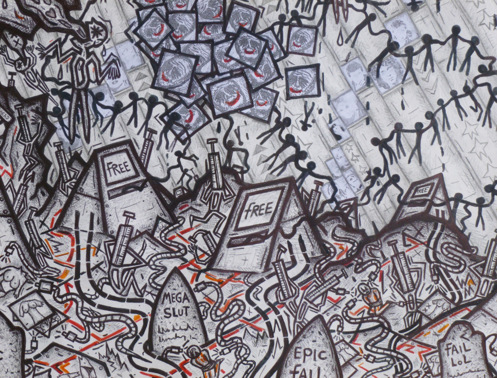 Everybody’s Fracking (2015, mixed media on paper, 95X130cm)