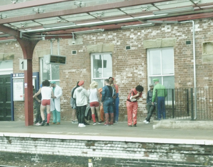 “Trying to wake up this morning, after yesterday, was incredibly hard. Is it specific to my own make-up that I find ‘attending’ demonstrations to be an emotional rollercoaster to such an extent that I experience what a more far-flung version of myself would attribute to ‘jet-lag?’. But the emotional ‘wave-pool’ hasn’t died down yet, as now I’m up and about I’m borderline manic, which I make visibly evident in my haste of avoiding the subway on the way to Wakefield Kirkgate station, skipping over the dual carriageway, and jumping over the railings. I feel charged, you see, and I don’t want to go back to anxious sleep-walk of ‘everyday’ life, from where it’s ‘nihilizing’ affects beat me into daily-depressive-pleasure-seeking. This is why the sight of a stag-do on platform 1, gearing up for a night out (likely heading to York or Newcastle), already spilling beer everywhere, at 12pm on a dreary Monday, doesn’t initially stand out for being out of context. But then I realise that this isn’t down to that fact that I’m out of sync with any normal sequence of events: it’s because such a sight is utterly normal fullstop. It’s just one of many potential scenes from an already-anticipated slideshow; one of limited imagination and possibilities; a slideshow on endless-repeat. The return of the 80’s; not in class warfare, but in caricature, comic book and video-game fancy-dress-rehashing. A now-seemingly-obligatory ceremony for a Nowhere Time. And it’s literally standing in the way of my need to sustain the idea that there’s something beyond this Flat Earth Digi-box-Dystopia. I’m now on platform two as the train pulls in for Barnsley. I’m restless. I’m sat behind two men of baby boomer age – one with a Lancastrian accent, the other American. I can’t help it, but beneath the perpetual turmoil of my self-esteem, I’m quietly looking at the other passenfers and thinking “do you want social change? Are you sick of all of this too?”