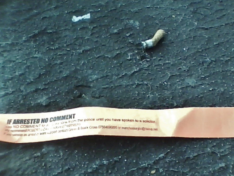 “I eventually return to a level of sociality, retreat from my desire to find a pub, and locate my friends near a pub at Deansgate – where I do have one pint. We head down from here towards Oxford Road, surrounded by an increasingly fragmented group of demonstrators. I assume ‘the demo’ has come to that ‘glass of cold water in the face’ moment of late capitalist ‘realism’ where everyone starts thinking about work tomorrow, and what’s in their fridge for when they get back home (a thought conveniently attended to by the Sainsbury’s store we are now approaching). But as we begin to walk back down Oxford Road this proves to be a massively wrong assumption: whilst stood around the The Thirsty Scholar pub under the railway bridge, the police jump out of a van, approach and arrest a couple of members of an anarchist-leaning group who are having pints outside the pub. Tensions flare up as members/or friends of the young men being taken jump up, brandishing the cards we got handed earlier which state that the police have to state a clear reason for why they are detaining somebody. One of the friends I traveled with tries to intervene to help the young men being incarcerated, only for a police reaction to result in a scuffle that looks like it could get very messed up. And although it doesn’t, the potential sends my cowardly heart right into my mouth, and I’m shaking like always. I watch for what feels like an age with my customary dumb-spectator-glare, only to get more and more annoyed at my inability to act. I end up manically meandering up and down the nearby alleys where the graffiti-mural of ‘dirty old town’ Manchester no longer has that tame-millennia-mush-reflectionist-culture feel to it, and now takes on a look of ‘why we fight back’, which is what could be said of Manchester-2015 in general. As my friends stand on the pavement of Oxford Road absorbing what has just happened, they are in hearing distance of a pub bouncer who is that deeply bored with existence that his initially “everybody hear me(!)” dislike for the protesters is cut short to start talking about the football scores. I’m still shaking, and give in to half a pint within this focal point of trouble, The Thirsty Scholar. I realise I’ve walked into a poetry event, as the woman on stage recites verse on her guilt on walking past an homeless person who is asking for spare change – a guilt I feel I have documented thoroughly during the past few years. The event turns out to be part of this weekend’s nationwide ‘We Shall Overcome’ events.”