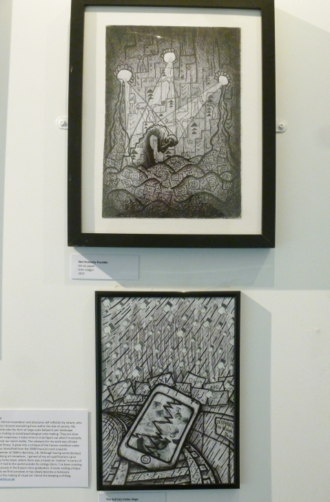 The exhibition has been curated by Mark Milnes, of Creative Arts Hub. From a large number of submissions received via curatorspace and by email, we have selected a wide range of approaches to the subject. Work has come in from across the country; and we also have artwork from Canada (Emei Ma, nascentscienceart.org), and from Austria (Klaus Pinter).