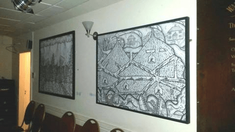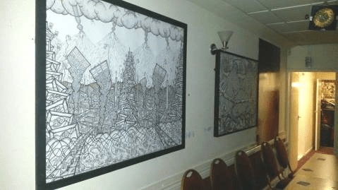 Here is a selection of my works on display at the Redshed (the Wakefield Labour Club). Although these works are being taken down today, they were displayed as a ‘taster’ for a larger, quite exciting event, that I am involved in staging later in the year. So please stay tuned in as there will be posts about it coming soon…