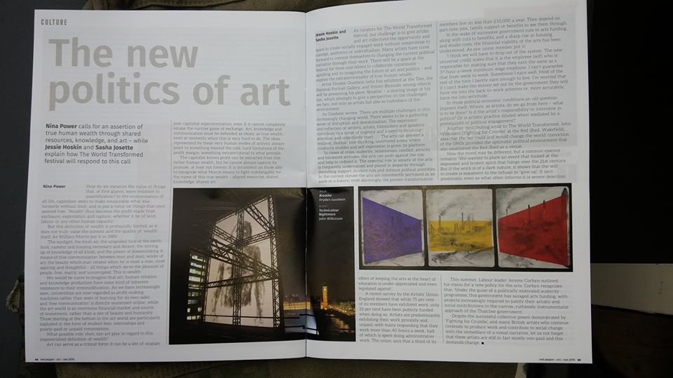 I was very pleased to be invited to exhibit at The World Transformed, a 4 day festival hosted by Momentum as The Labour Party held their conference, and the leadership election results were announced, in the very same city. It felt great to be taking our exhibition project ‘Fighting For Crumbs (Art in The Shadow of Neoliberal Britain) to the Black-E in Liverpool, to have our work in the same location as speeches by many figureheads at the forefront of a movement to push for much needed changes to the way politics is done and society is run.