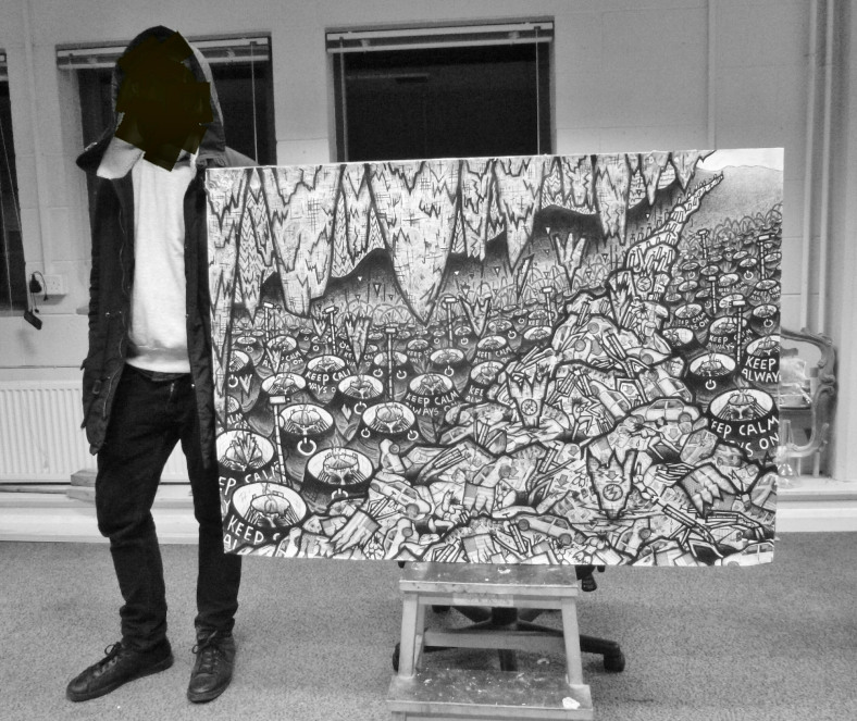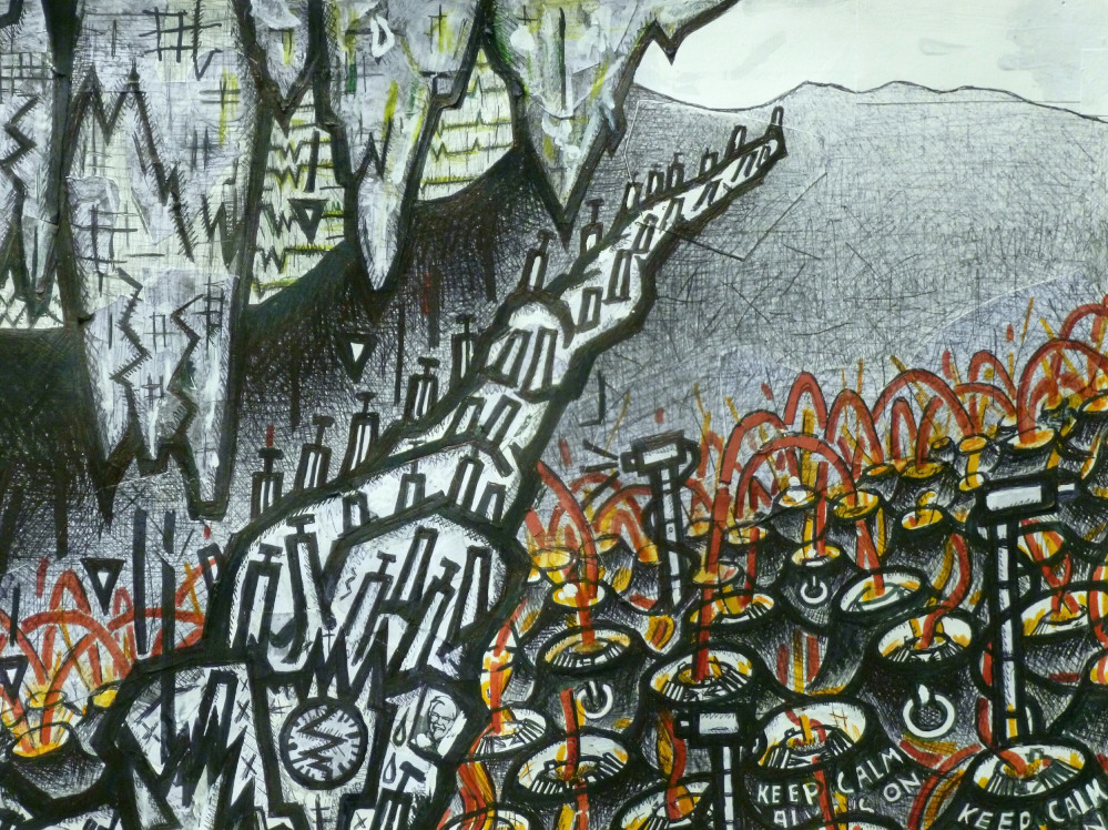 This will probably be the last major piece of work I finish in 2016. The drawing attempts to look at the debased spirit of our times. If I were to give such a time a name I’d called it The Zeitgeist of Disbelief.