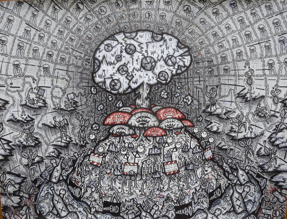 It is the sister work of the recently finished Hope of The Nihilized. Both were conceived in the space of two days. Both works not only desire/long for, but demand, an active transition from a capitalist system now condemned to be a wheel spinning furiously in the deep mud of its end point, causing only senseless trauma and decomposition, on the soil and in the soul.