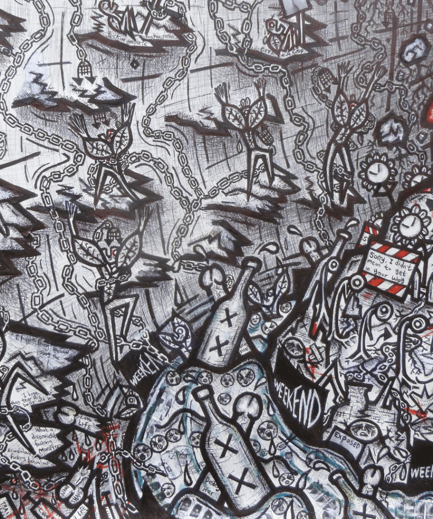 However, I’m starting to feel like this drawing marks an end point, not only to a body of work that has tried to reflect life from run up to the 2015 UK election to the 2016 US Presidential Election, but to a stage of my life. I’ve been making these large drawings for ten years, and there’s many things I haven’t and want to do in life, regardless of whether the world goes to war tomorrow or the air becomes poisonous. Most my adult life has been stunted by self-esteem and emotional barriers, a path which I’m trying to take pigeon steps away from now. But without going into all of this (as it isn’t largely relevant, and I don’t want to encourage online ‘life advice’ I don’t need – I’m just explaining the facts), it may just mean a large gap, or a point of juncture . It may not – if I’m posting new landscape drawings on here in a few month it may well mean I’ve returned back to the only tools that have thus far worked.