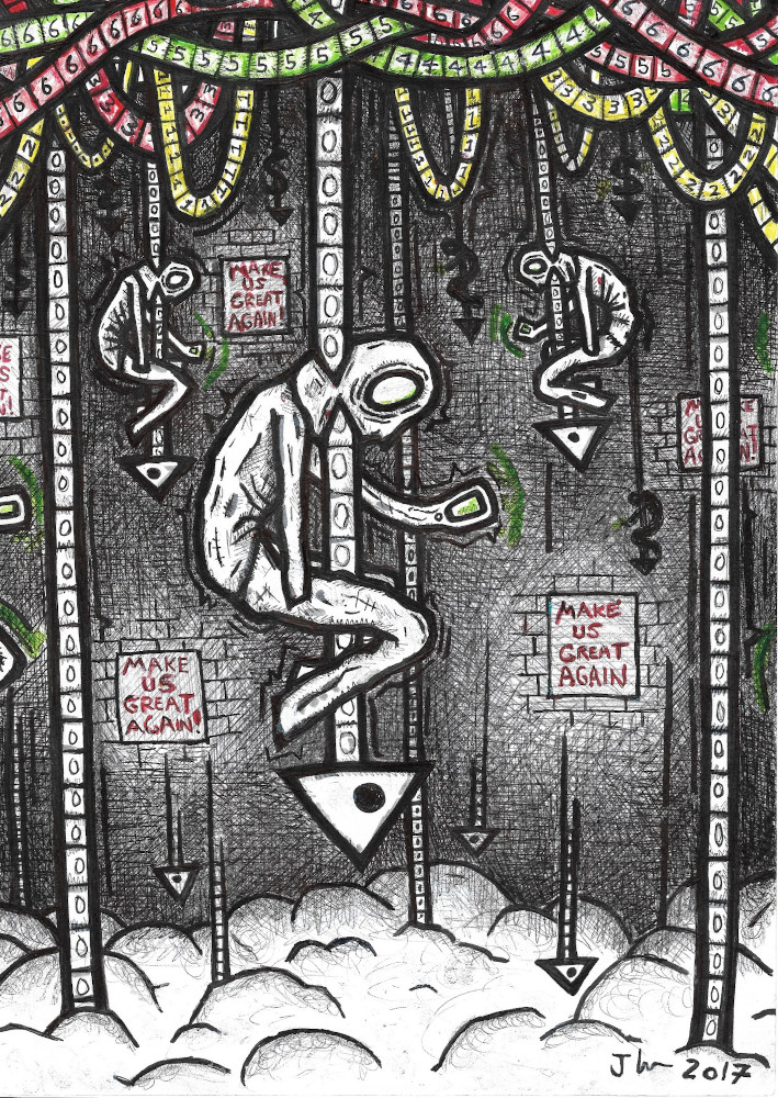 21st Century Limbo-id Men Posted byJohn B LedgerJune 4, 2017January 15, 2022Posted inDrawings 21st Century Limbo-id Men (2017, mixed media on paper) Share this: Click to share on X (Opens in new window) X Click to share on Facebook (Opens in new window) Facebook Like Loading... Related Published by John B Ledger multimedia artist from Uk View more posts