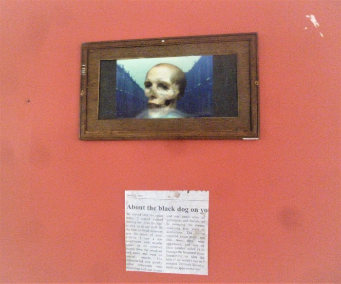 Through the Leeds-based arts group Skippko we have gained access to an eerie old building on the road from Bradford to Otley, last used as a pub. This disused pub, and the remnants of all the pasts, in and outside the doors, met with a disconcerting present of endless volumes of traffic for the now-more affluent side of the Urban West Riding, has to be the most perfect of settings for the first proper exhibition our collective has held.