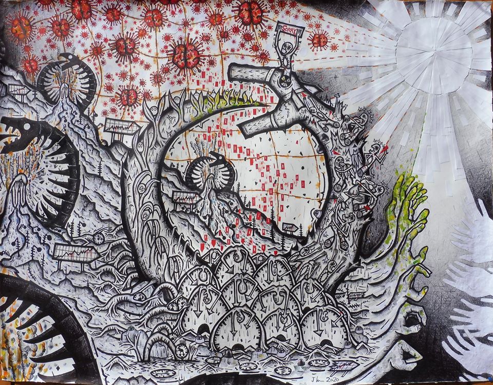 For the first time, probably due to the larger situation, I decided to make a video work about my latest piece of work. A New spring has sprung (mixed media on paper).