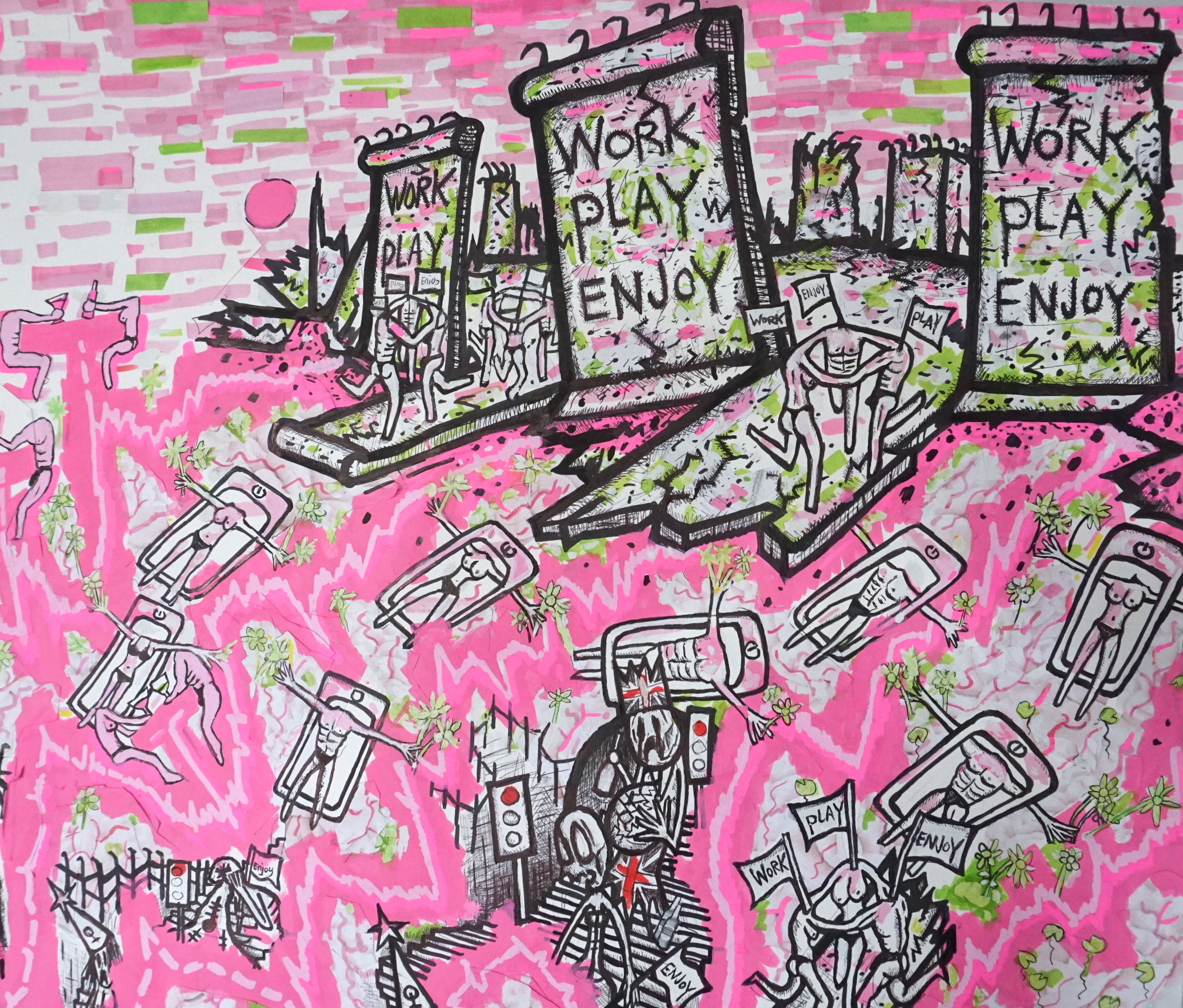 This is more outwardly angry work I’ve made in a long time; anger not an individuals but at a culture fixed to a story that is evermore removed from reality in a post-covid landscape.