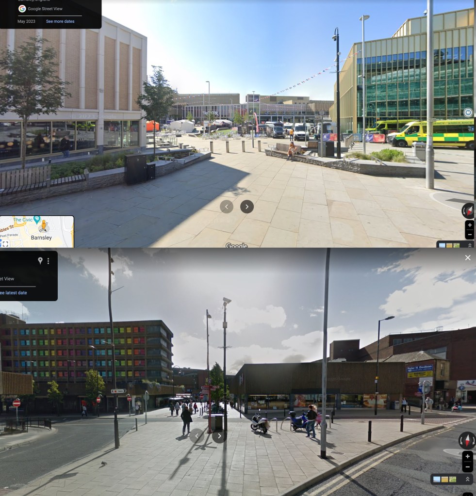 I find nostalgic trips quickly become quite unpleasant. But Google Street view doesn’t ‘feel’ past tense – it’s so central to our navigation of the present tense. We feel like avatars of the streets; both present and absent at the same time. Which is why it looks weird to see people wearing protective masks, in slightly less up-to-date imagery – like a reality slippage back into a moment that already feels paved over by the triumph of ‘Back to Normalism’.