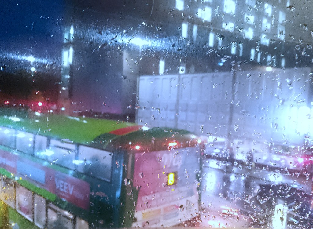 The November rain pours and begins to provoke the discomfort that makes one long for privacy. Yet I look into the windows of a corporate office at a large semi-abstract painting that hangs above reception, and recognise this dislocation with public space in political rather than personal terms.
