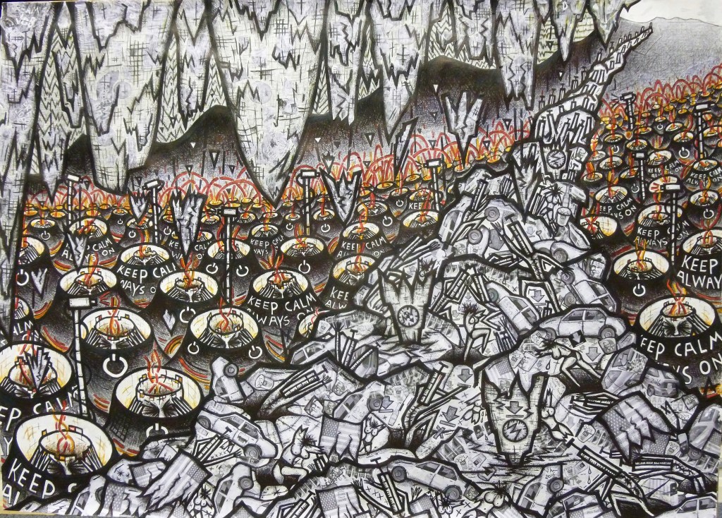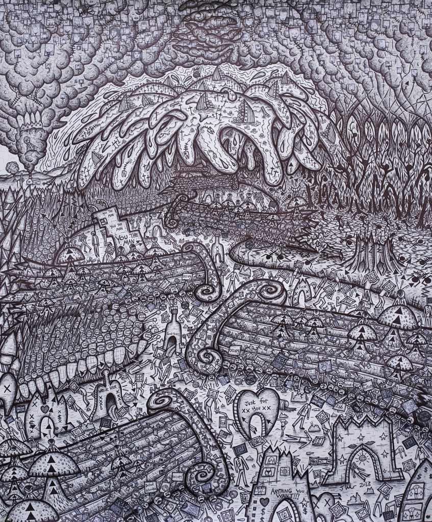 I think I tried to upstage the aforementioned drawing, by making something even more ambitious. Unfortunately I began to lack the space and resources to work on such a scale there-on-after. My drawings remained big, but these drawings were huge – inspired by my first couple of years working front of house at the nearby sculpture park, but unaware how much room I’d actually need to make more of these.