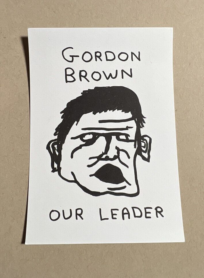The artwork above is very David Shrigley, in that what looks at first like simple satire is very multilayered, and between these layers is love, perhaps even the desire to be led as if we were blind. Back in 2010 this poster almost got me voting for New Labour, even after all that had made me and many others my age so apathetic by the end of the Noughties.