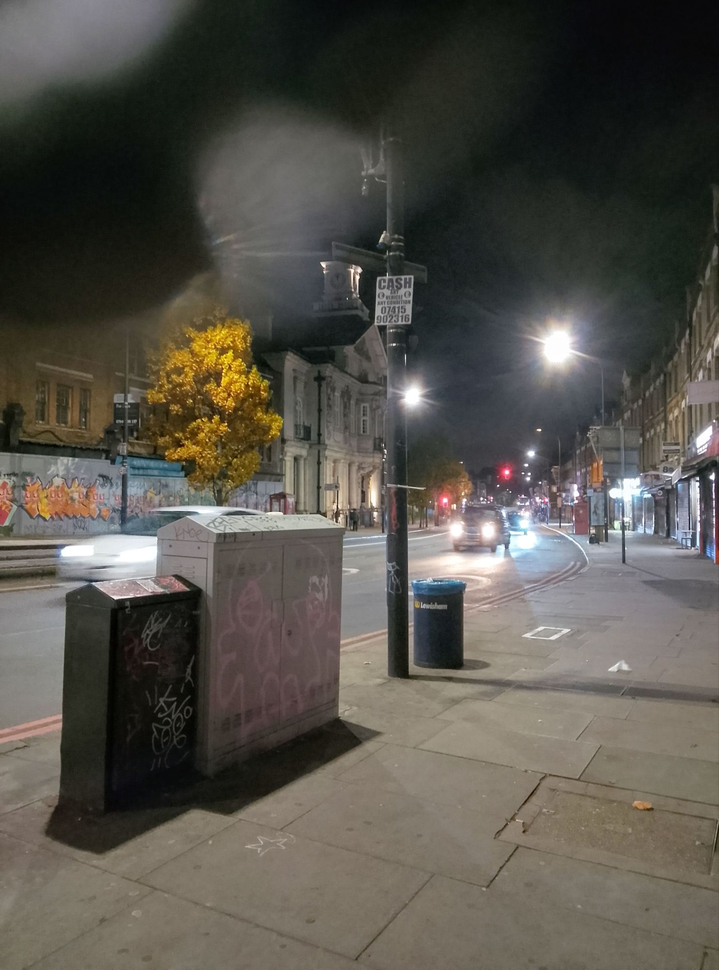 The first recognisable site as we approach New Cross is the large Sainsbury’s that projects its orange glow into the urban night sky. Strong memories cling to such inglorious spaces, perhaps because nothing else stakes any claims to them.