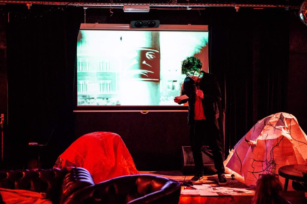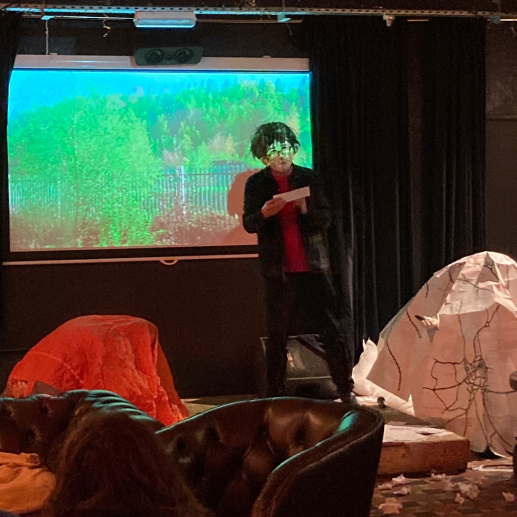 Afterwards I spent quite some time developing a performance that I’d agreed to put on for two separate events. This was quite a leap because I’d made a lot of what I’d call ‘situational spoken’ word pieces during the lockdowns as video works. I wasn’t sure how the creation of a scene and words would work in a live space. The work was to some extent about the suffering of ageing, but specifically in, to use a well-used term, times that are ‘out of joint’.