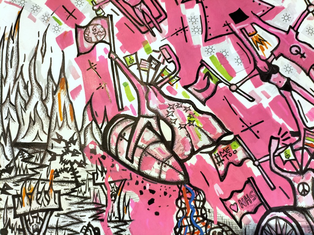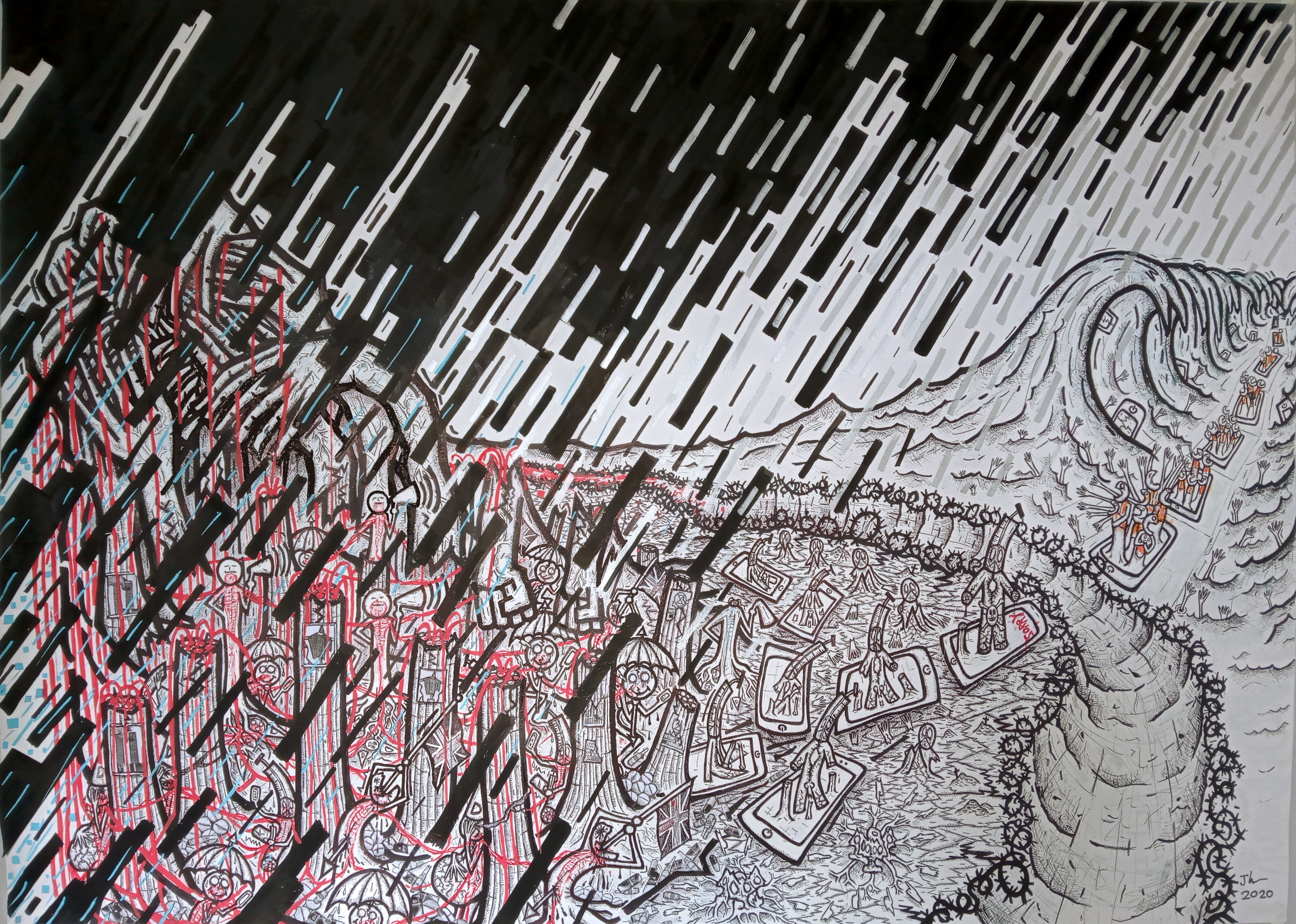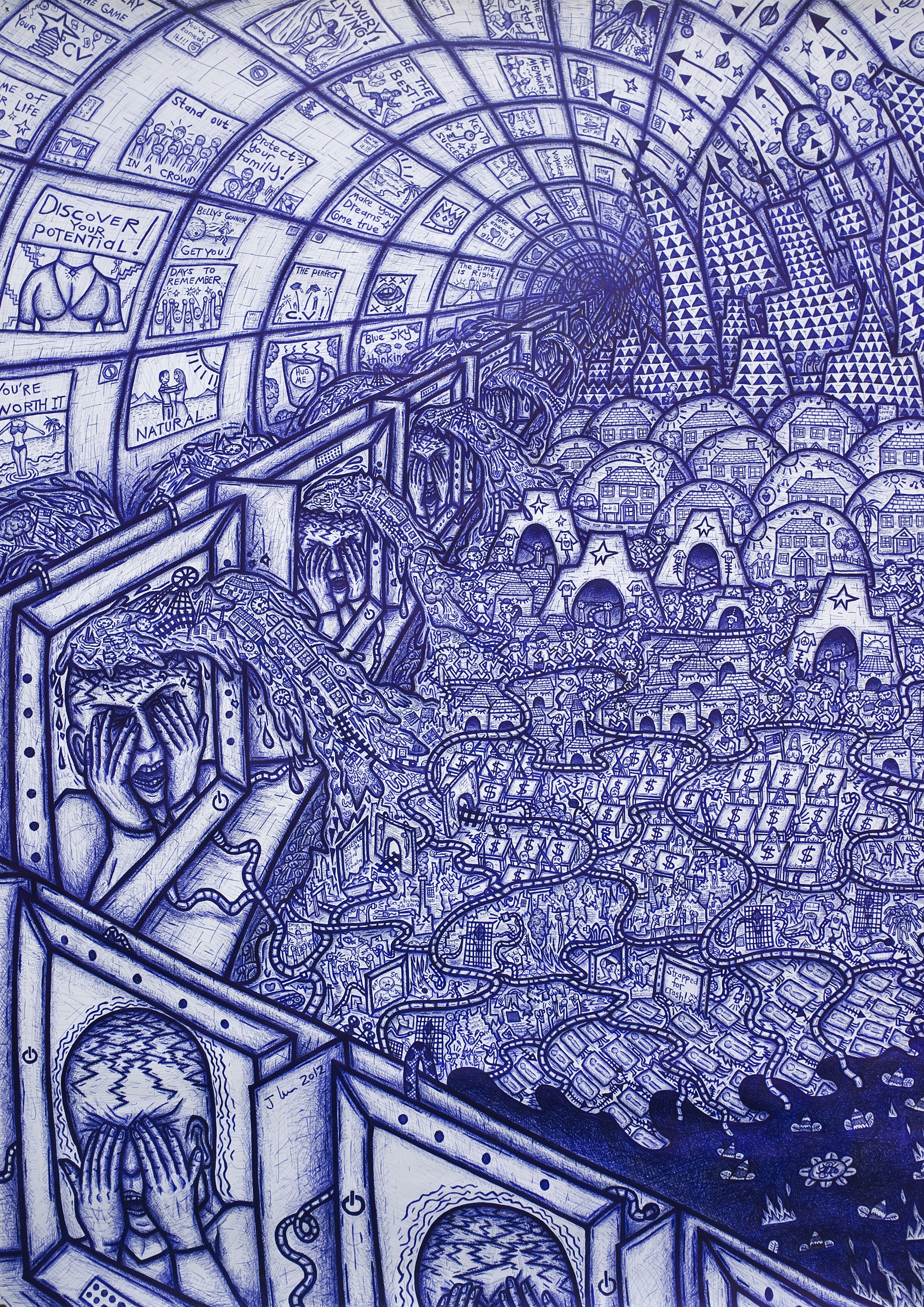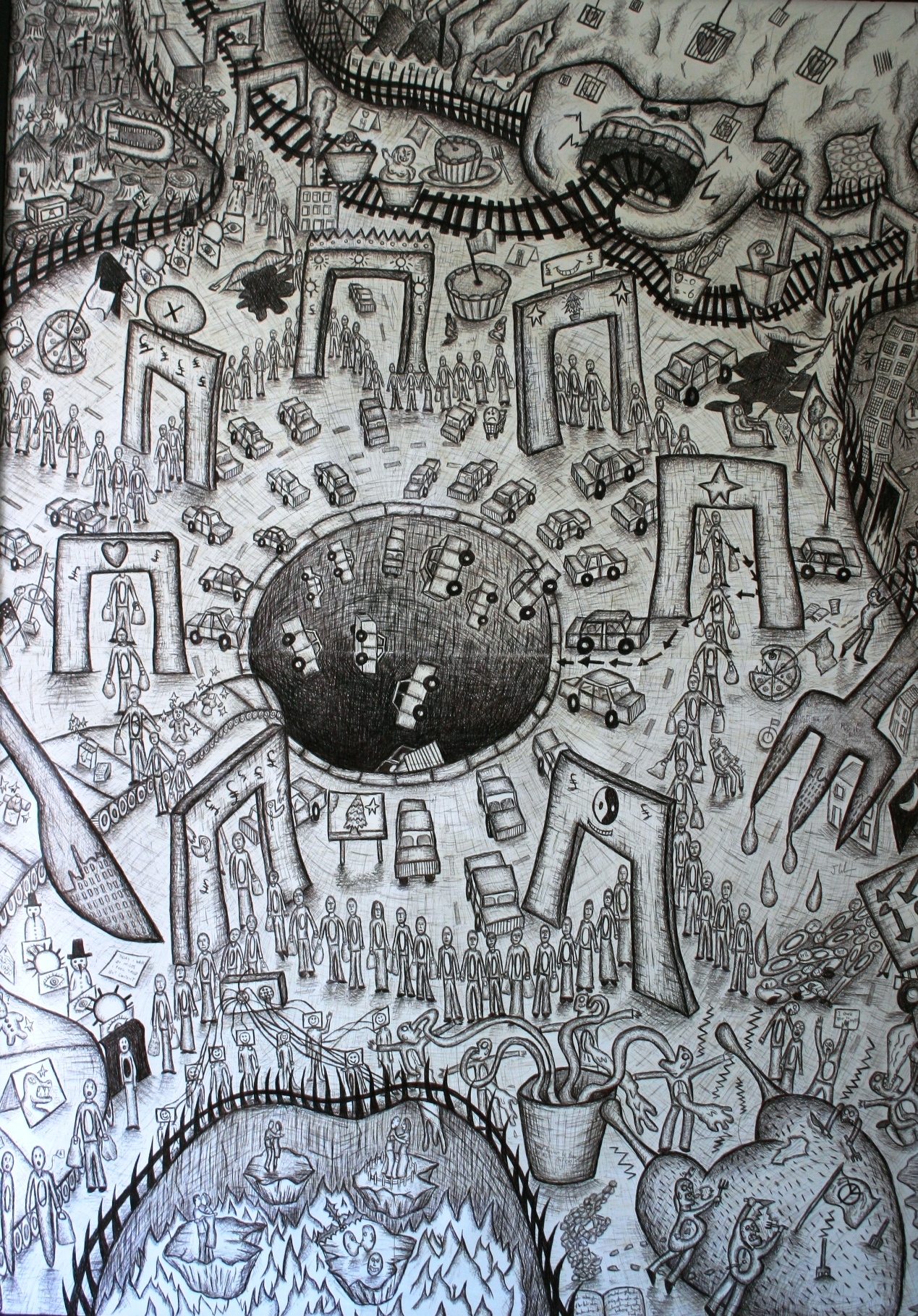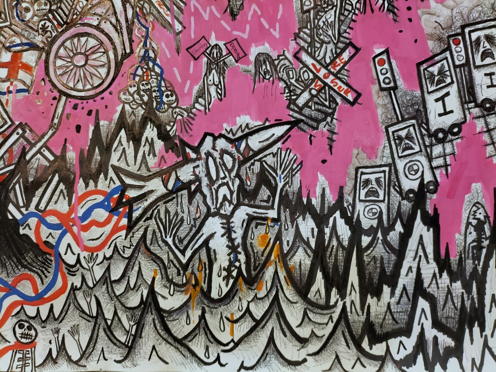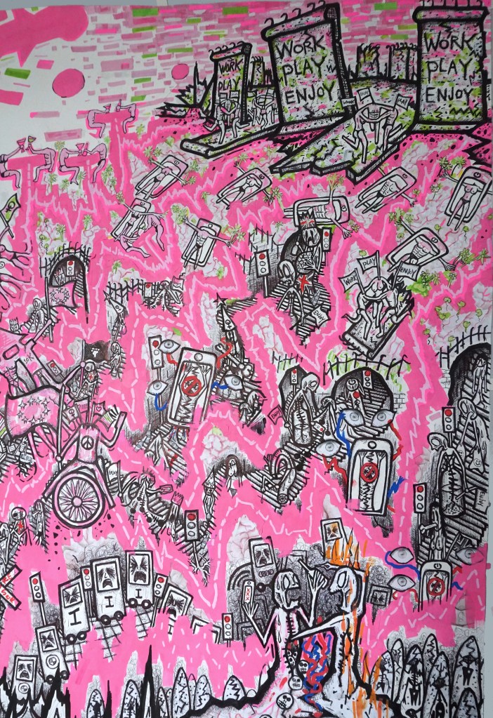 Thus ‘Hipster Psychosis’ is the latest ‘chapter’. I think what has motivated this drawing more than anything is the ‘post lockdown’ ‘back to normal’ culture, which feels like back to the split realities of life that emerged in the 2010s, but more intensified.
