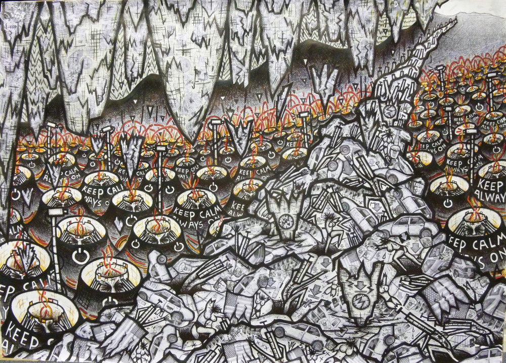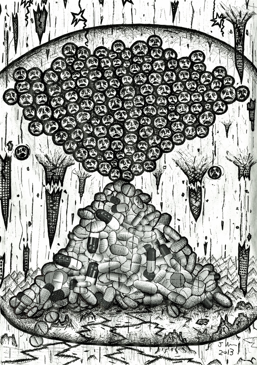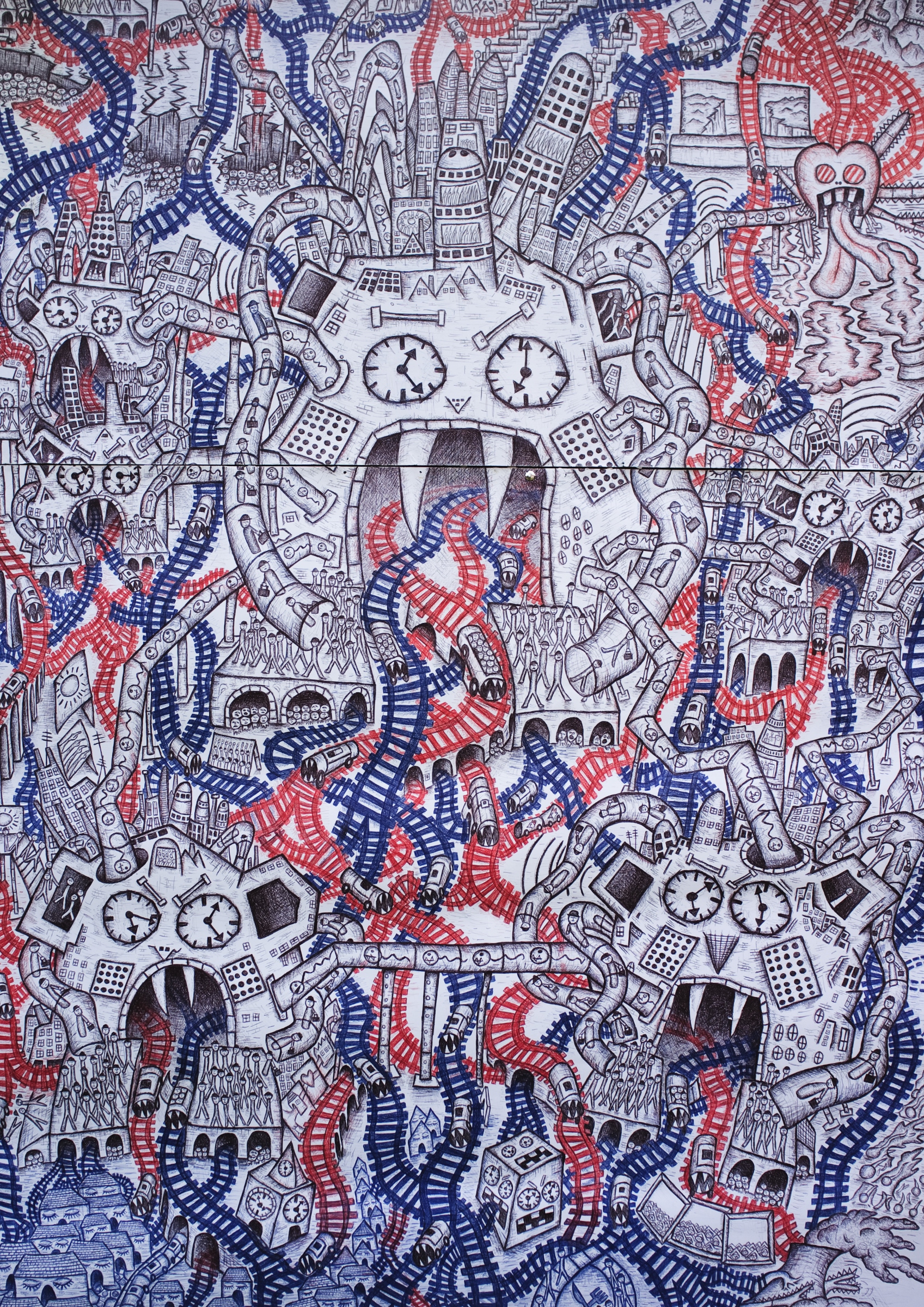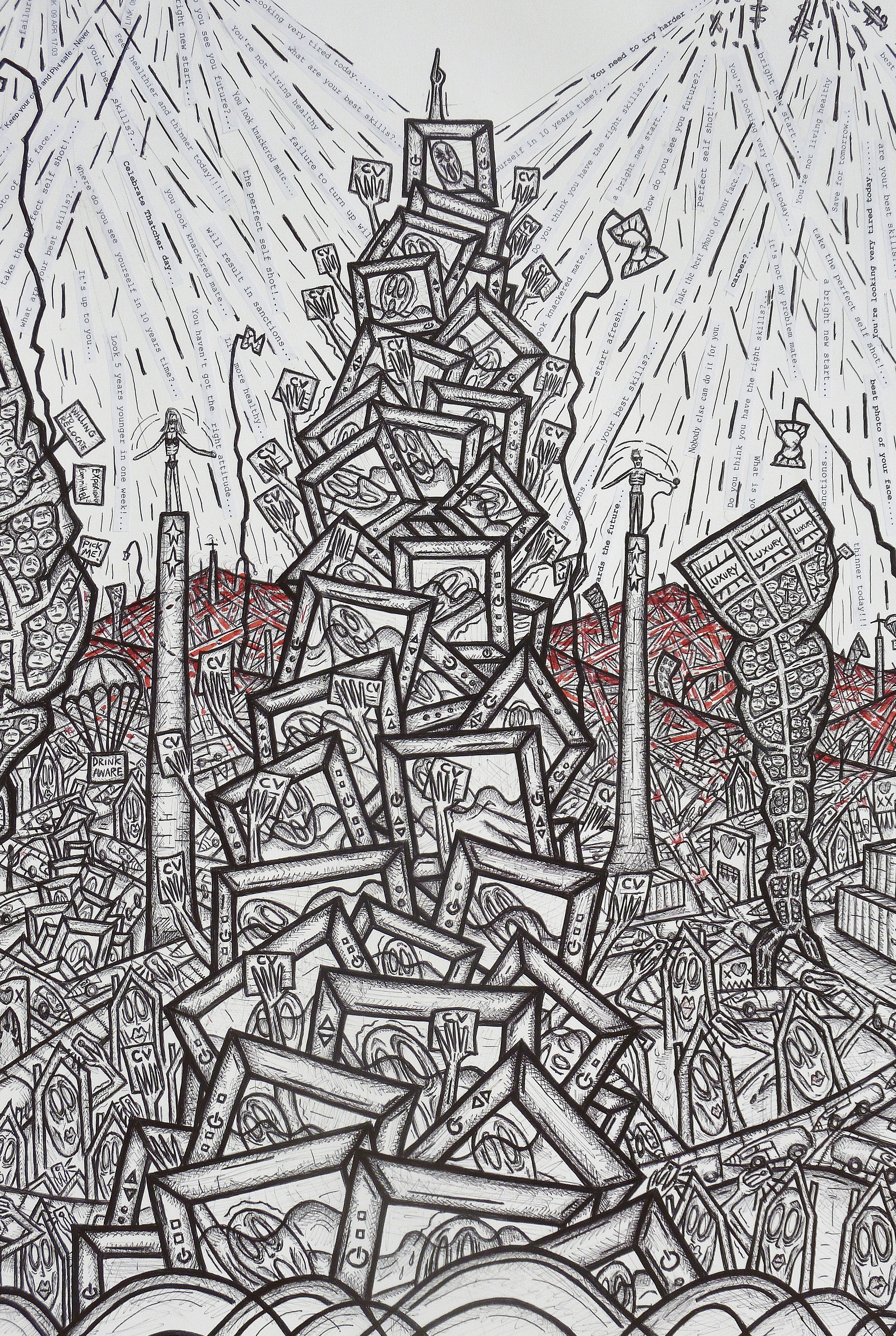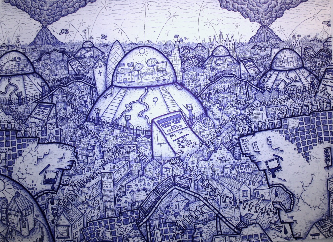 Thus ‘Hipster Psychosis’ is the latest ‘chapter’. I think what has motivated this drawing more than anything is the ‘post lockdown’ ‘back to normal’ culture, which feels like back to the split realities of life that emerged in the 2010s, but more intensified.