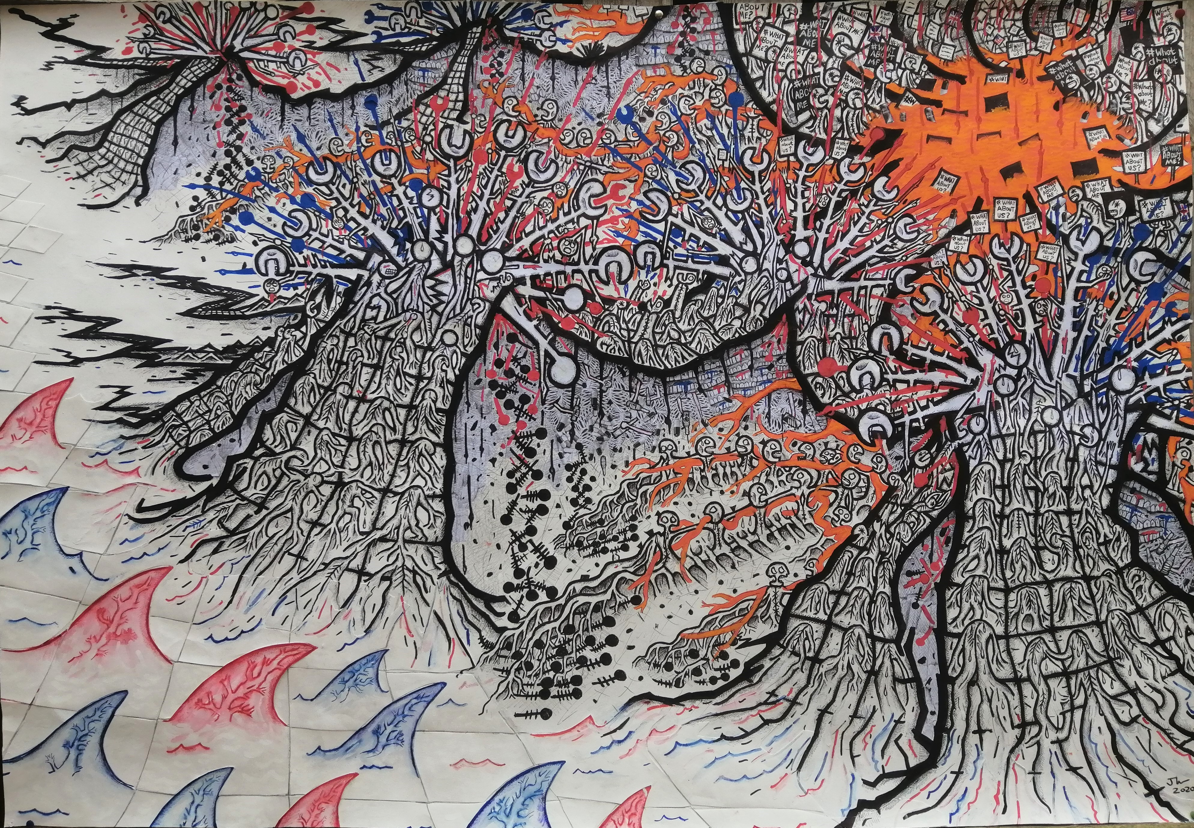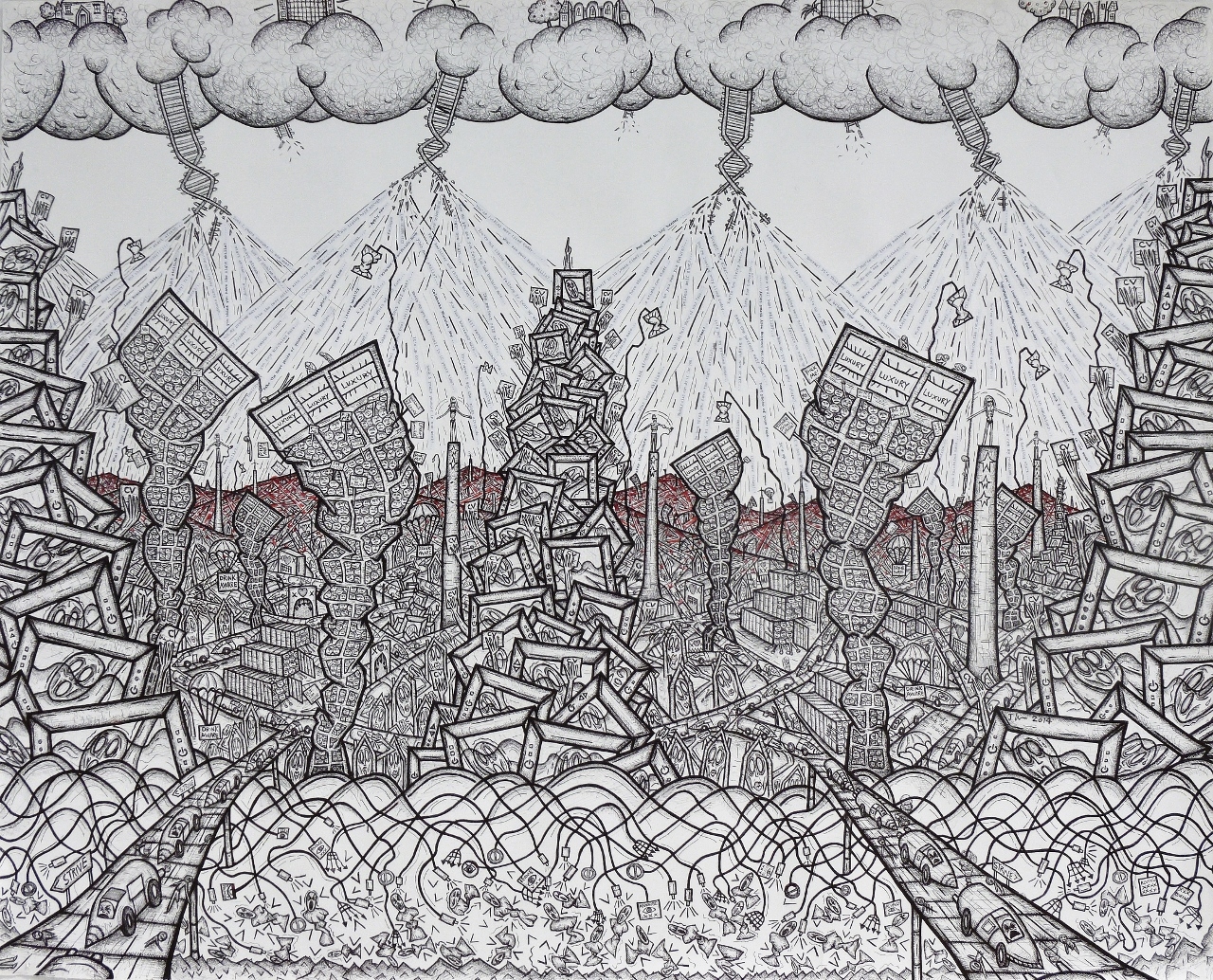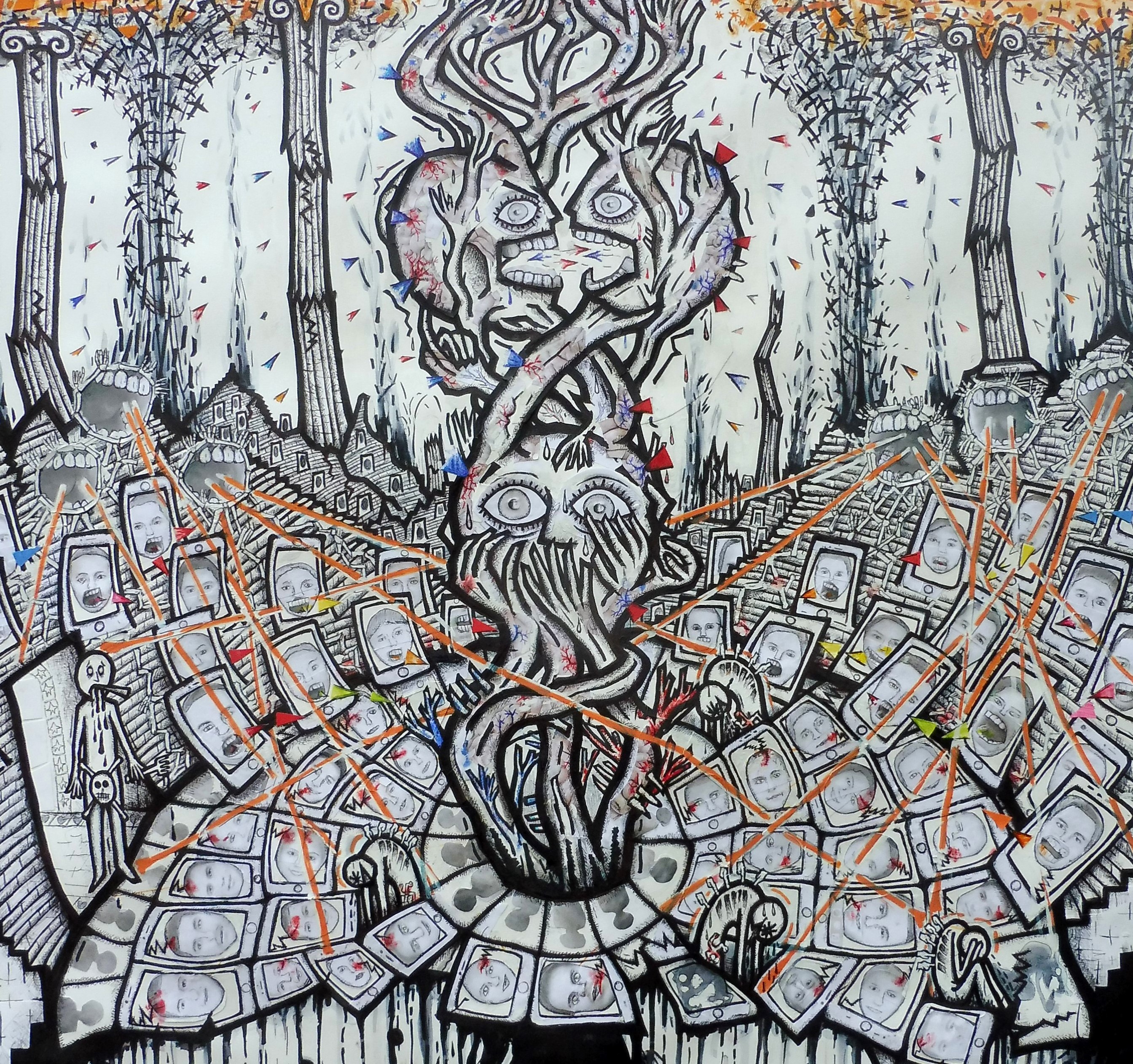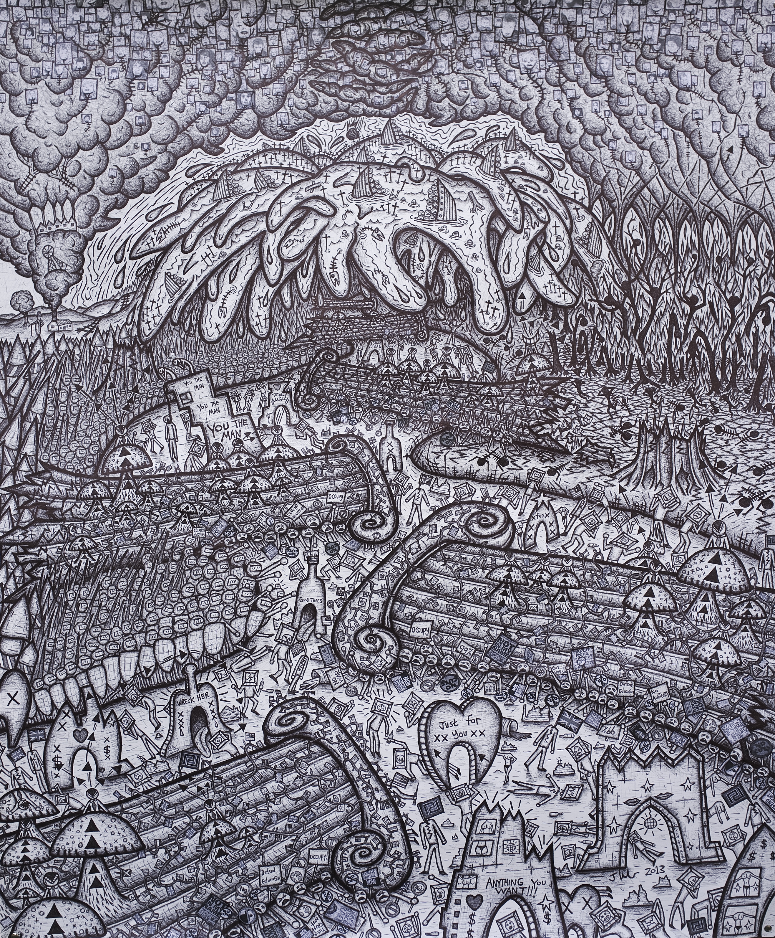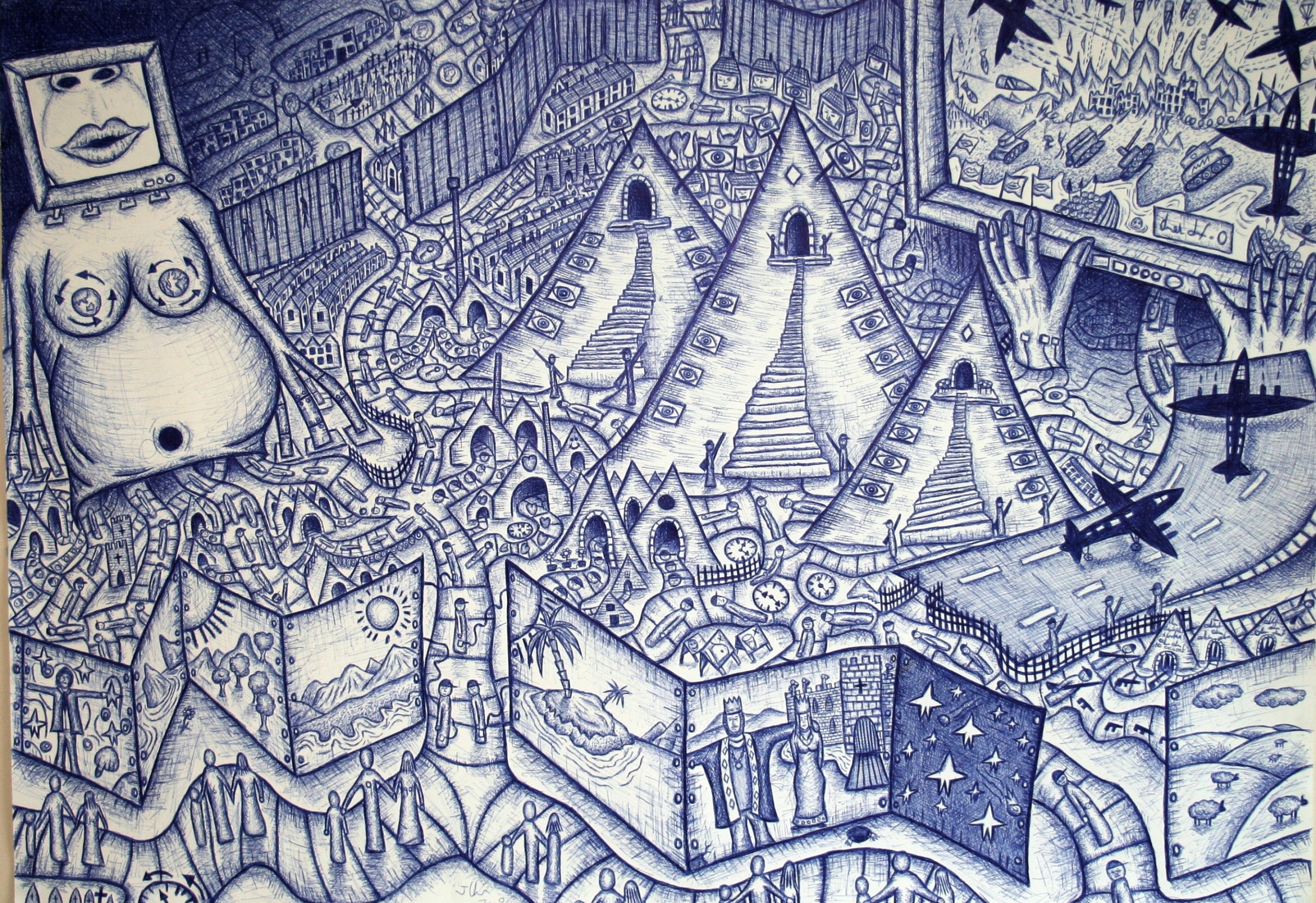 Thus ‘Hipster Psychosis’ is the latest ‘chapter’. I think what has motivated this drawing more than anything is the ‘post lockdown’ ‘back to normal’ culture, which feels like back to the split realities of life that emerged in the 2010s, but more intensified.