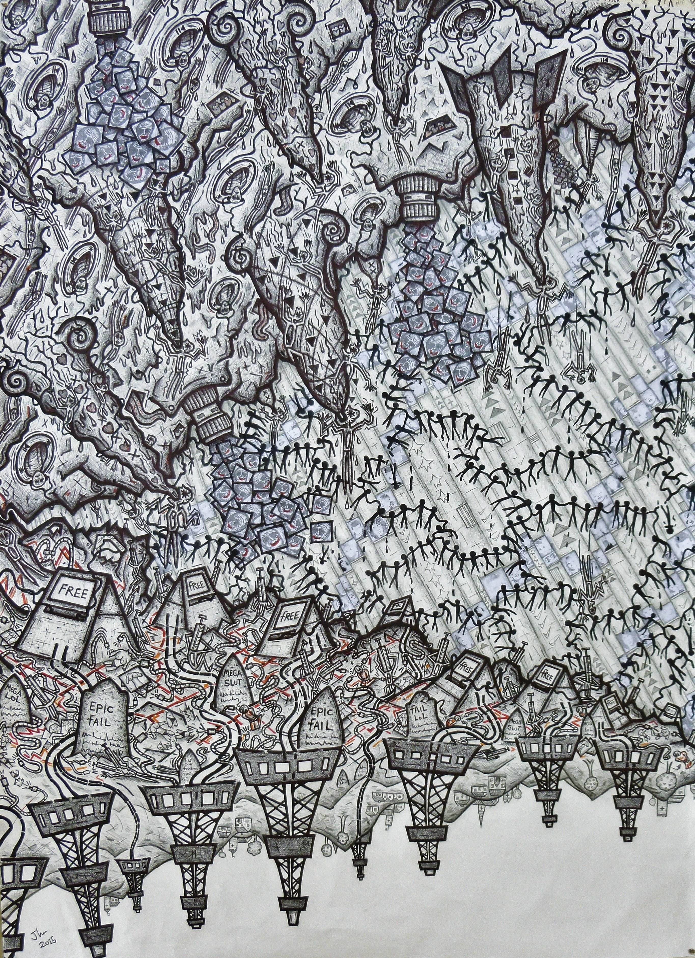 A Private Civil War was an attempt to mix my drawing with video work. Perhaps due to the nature of collating fleeting utterances of a critical inner monologue, and writing them into a script, it was the toughest work to make this year, and by that definition probably defines the year more than the other works.