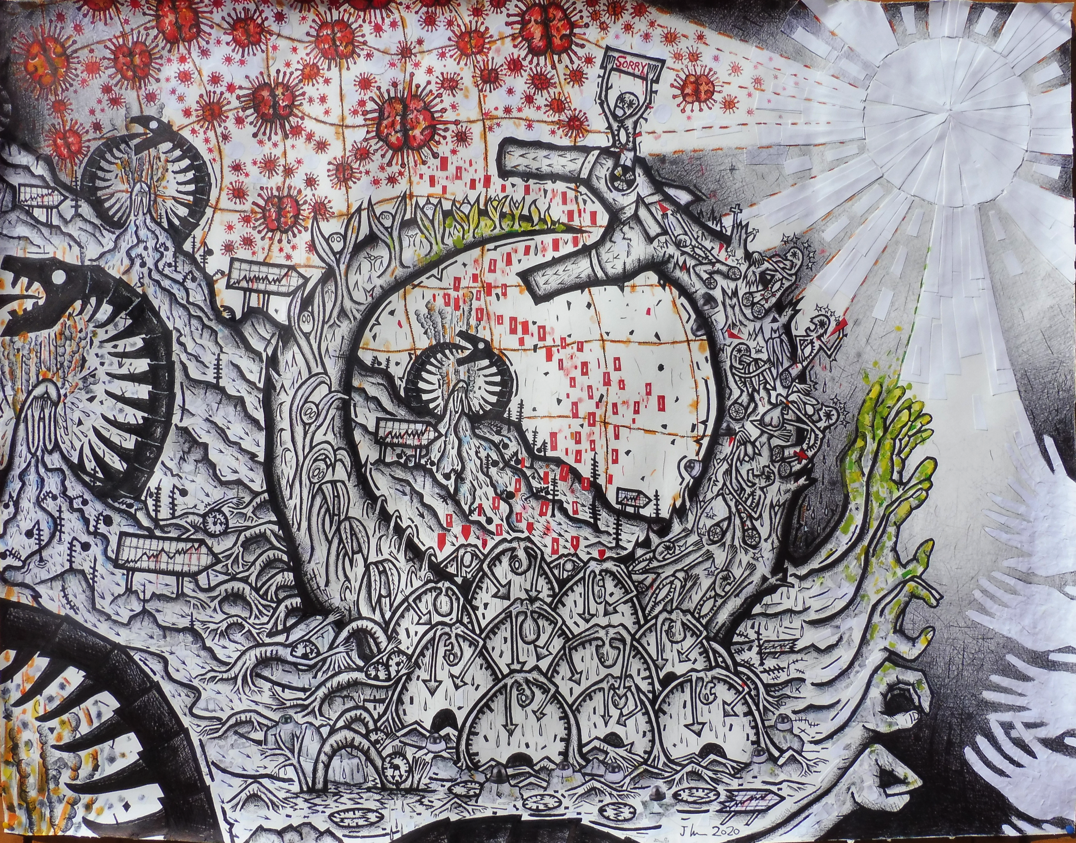 This is more outwardly angry work I’ve made in a long time; anger not an individuals but at a culture fixed to a story that is evermore removed from reality in a post-covid landscape.
