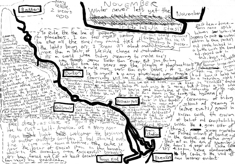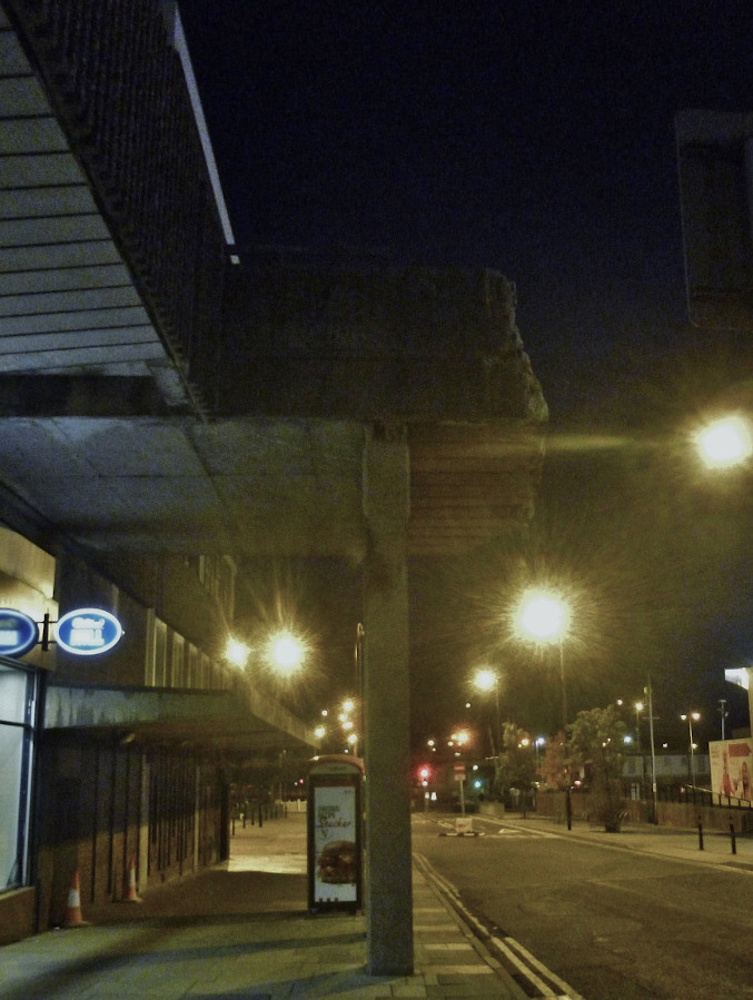 Walking back to the suburbs through an M1 junction-hinterland in the dark of a new winter. But nothing feels new. It’s late 2016.
