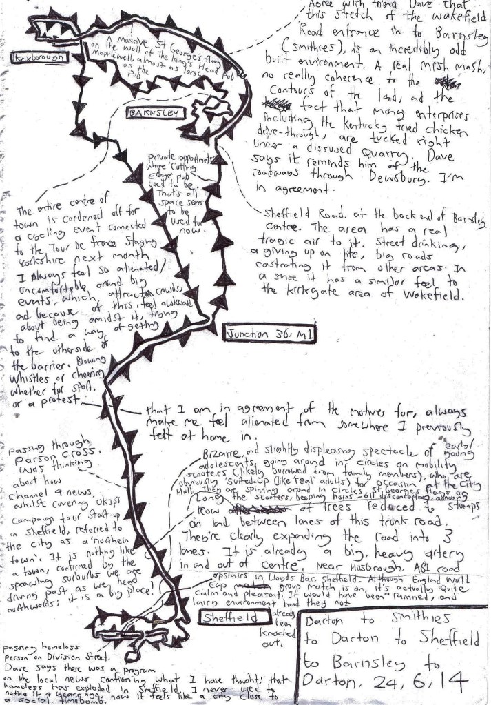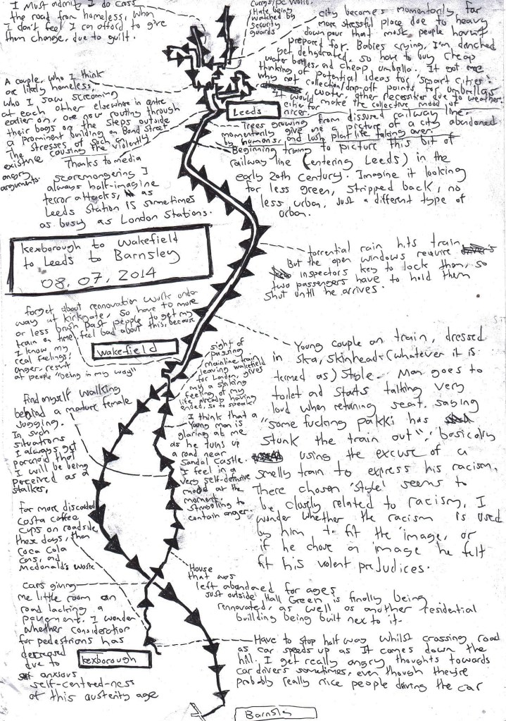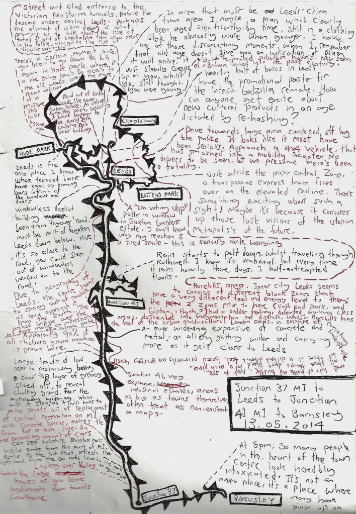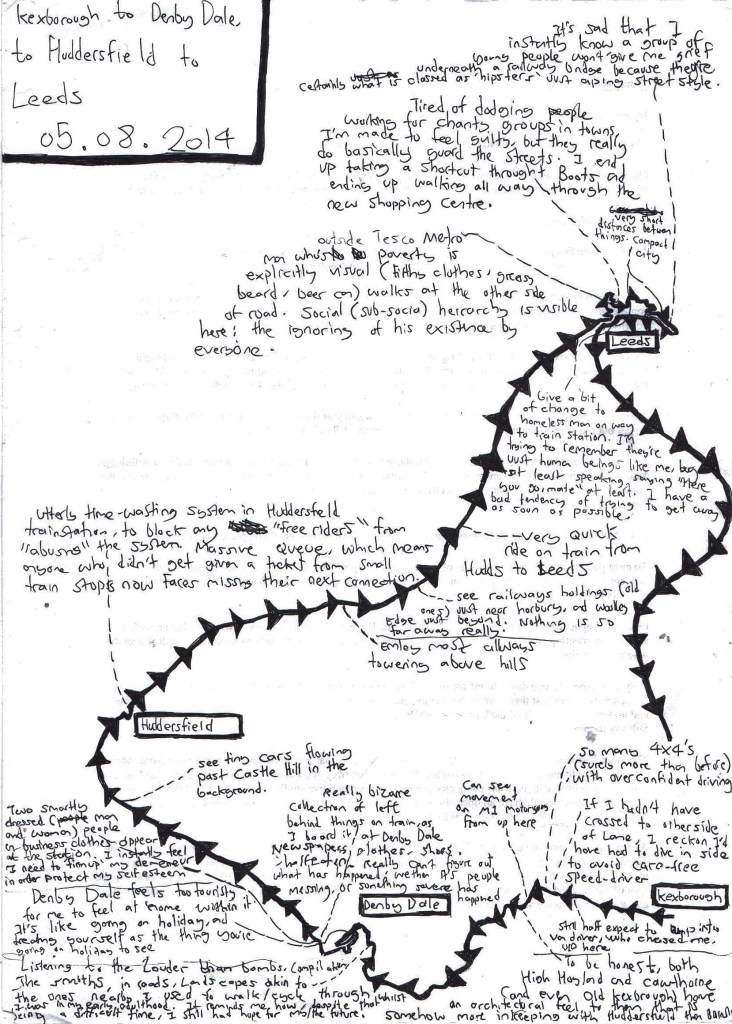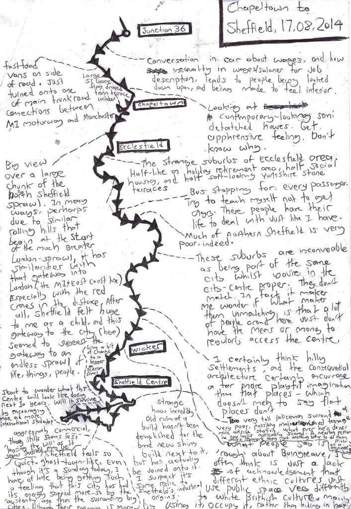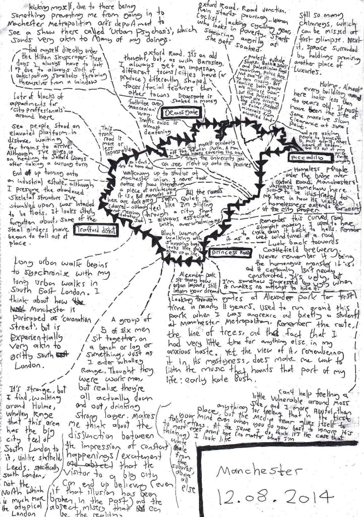 “The long urban walk begins to [blend together] with my long urban walks in South East London. I think about how Manchester is portrayed as ‘Coronation Street’, but is experientially very akin to gritty South London.”