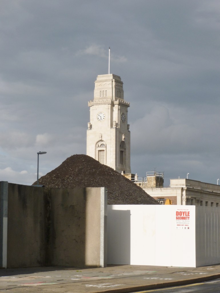 “Barnsley library now literally one big heap of rubble. What a waste. It almost looks like a dark monolithic construction. From here [viewed on Shambles street] it is placed right in front of the town hall – it almost looks like an attempt to rebuild Barnsley’s past landscape of spoil heaps.”