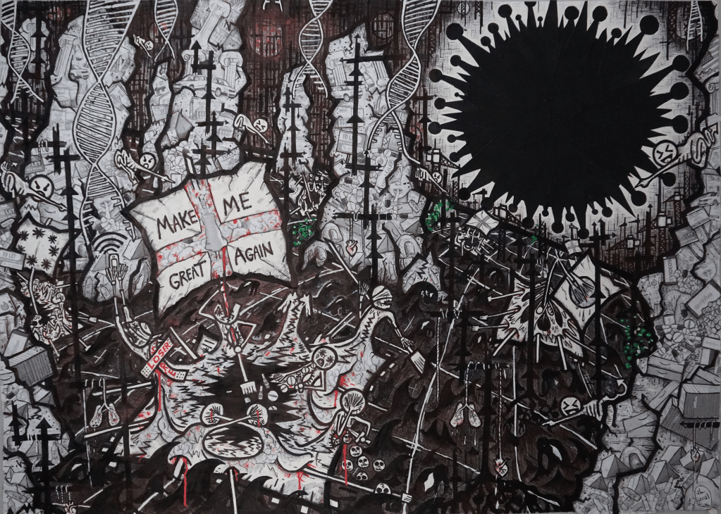 On one level they act out the shame caused by a brutally binary meritocracy of neoliberalism that produces an atmosphere of humiliation for those who don’t fit on the ‘guest list’ , on the other hand they blindly invert a collective shame over our nation’s colonial history into a zombie-ish celebration of it.