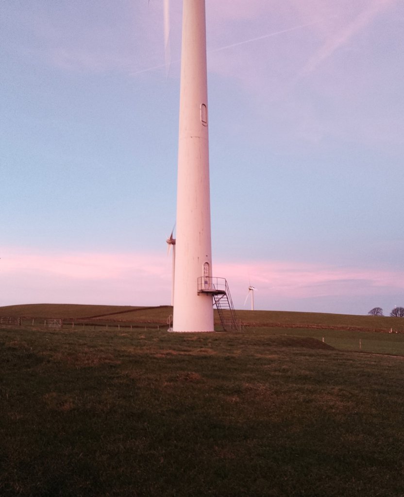 We look down to where the first few cluster-settlements start to draw out the beginnings of a Greater Manchester sprawl that changes from cobbled-stone to glass and concrete within our hazy horizon.