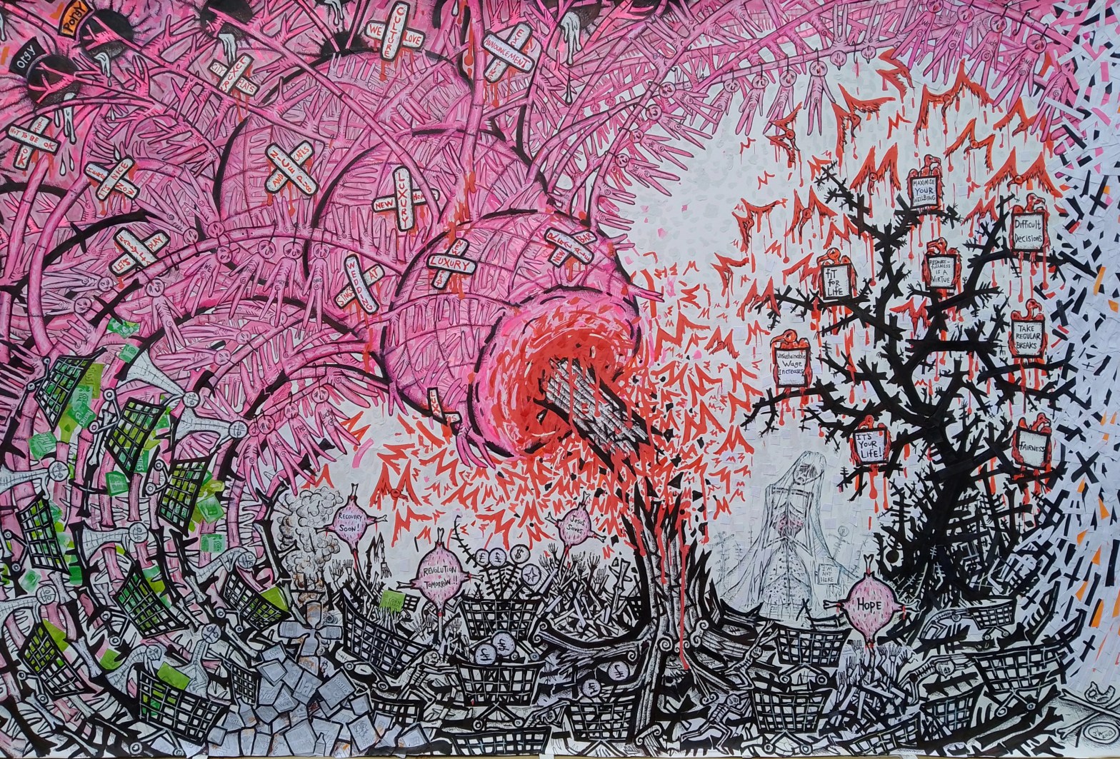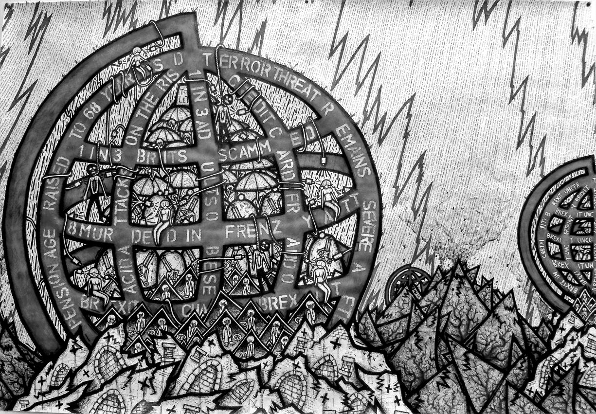 This is ‘NEW BRUTALITY’ Sorry for being trapped in the 20th century dealing with the 21st. And sorry for being unable to make any sense whatsoever – locked as we are inside the maddening house, where a ‘just do it’ Californian approach to life has left us all burnt out people on a burning planet. DeepContinue reading “‘NEW BRUTALITY’ (2024, mixed media on paper)”