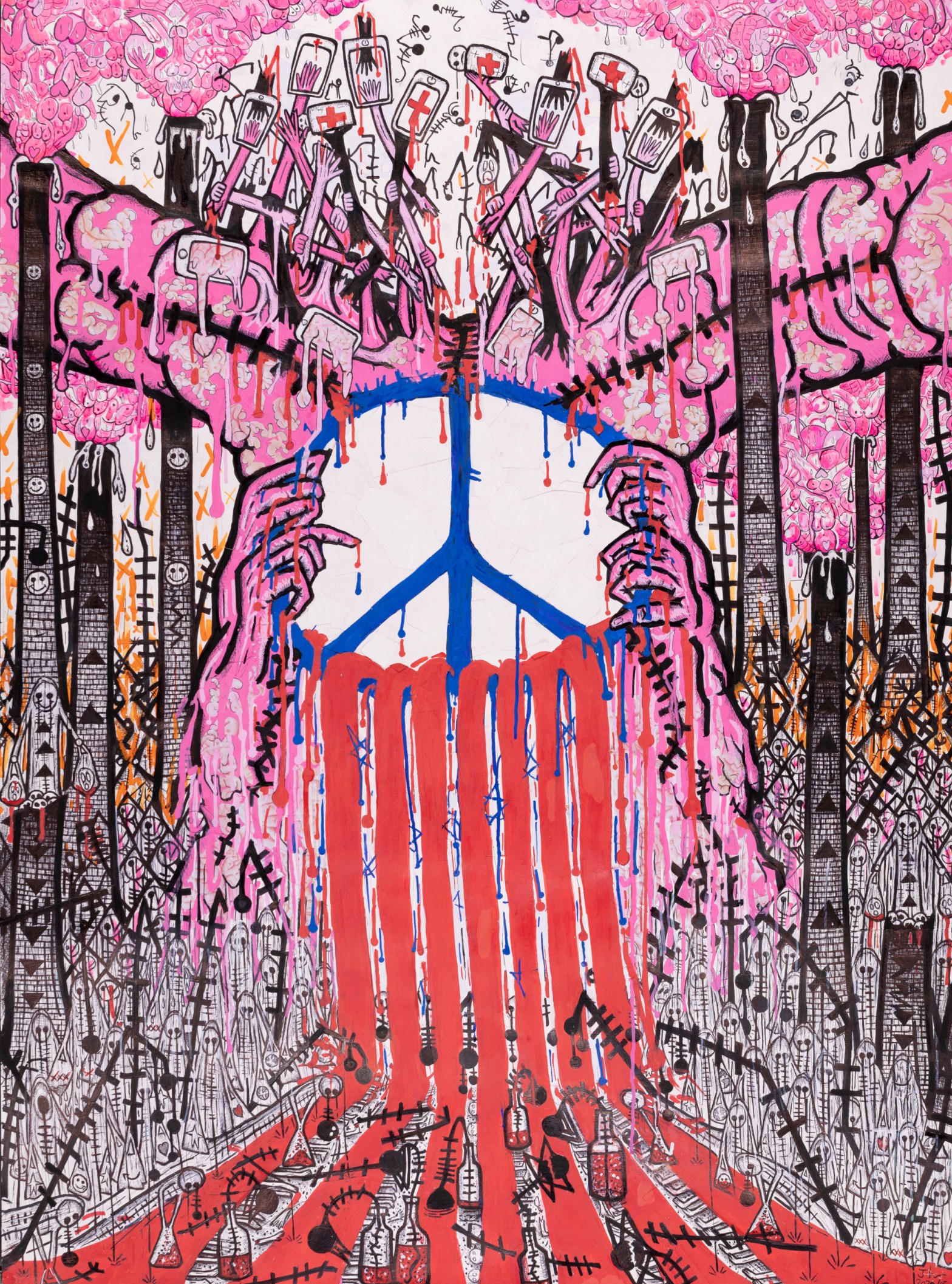 ‘NEW BRUTALITY’ (2024, mixed media on paper)