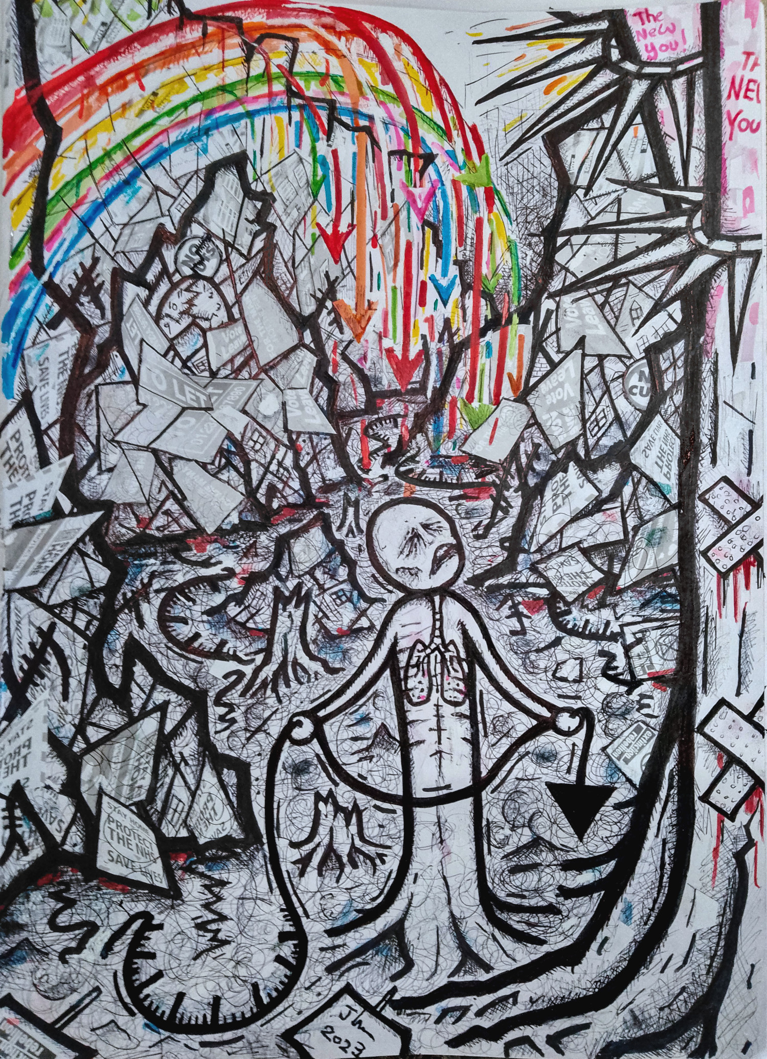 ‘We’ll make bones of you’ is my most recent work. Mixed media on paper, 2023. Cheers. I may be a nobody in the art world, unable to network, talk the talk, do what ‘you have to do’ to get traction. I may be both unable and unwilling (in equal measure) to make what I doContinue reading “‘We’ll make bones of you’”