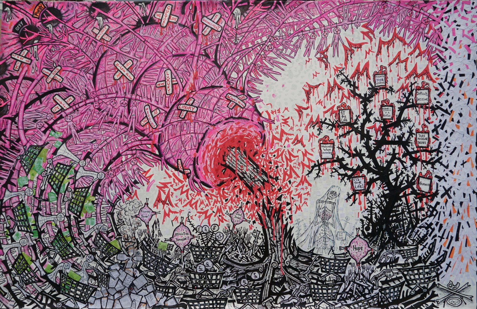 This is ‘Back to Normal-ism’. A drawing that will take will be at the forefront of a show of the same title in the new year. I have created a video about the work, which you can find below. Video talk through of ‘Back To Normalism’