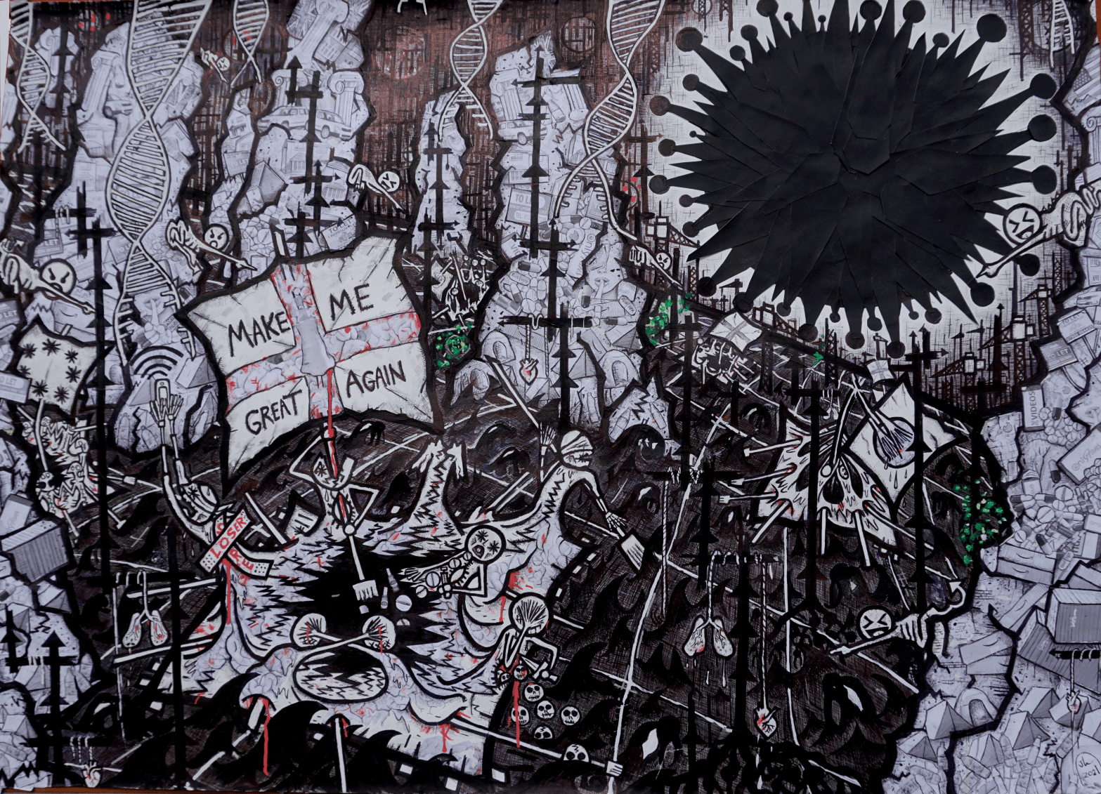‘Hipster Psychosis’ (2021, mixed media on paper) I’ve long seen my works as successive chapters in a book I can never complete, because it is lived in. Thus ‘Hipster Psychosis’ is the latest ‘chapter’. I think what has motivated this drawing more than anything is the ‘post lockdown’ ‘back to normal’ culture, which feels likeContinue reading “Hipster Psychosis”