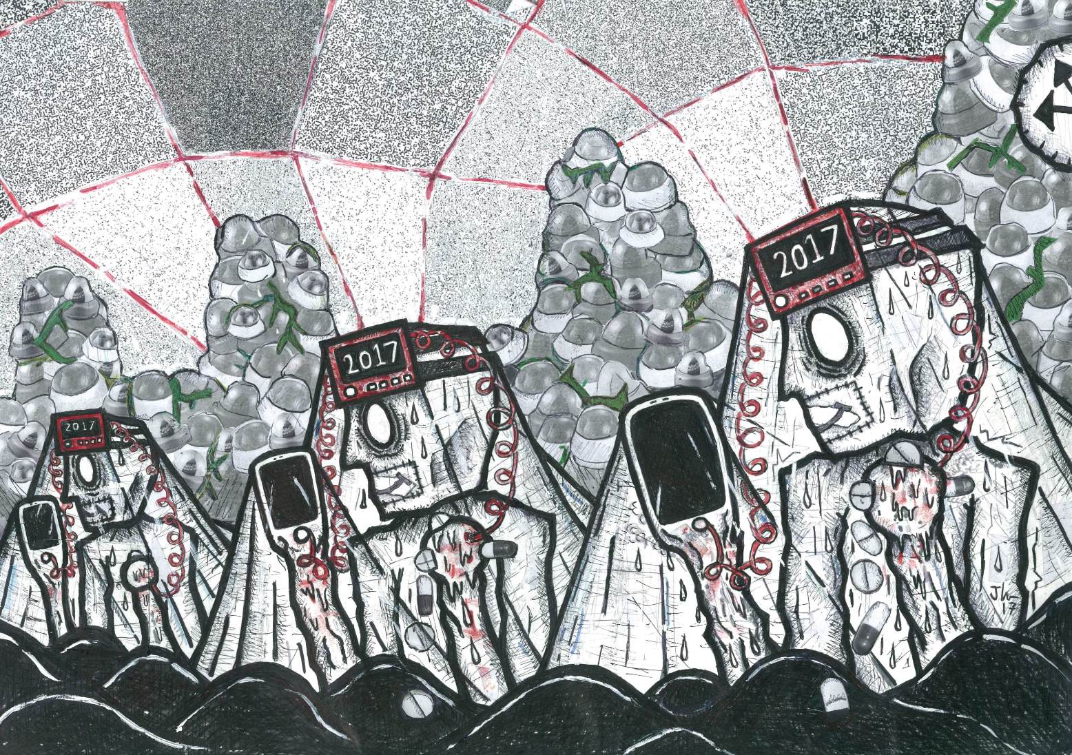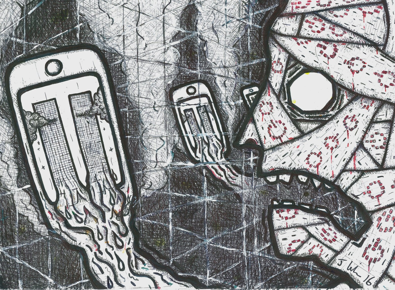 (2016, mixed media on paper) My last drawing of 2016. Literally finished at 11:20pm on December 31st.