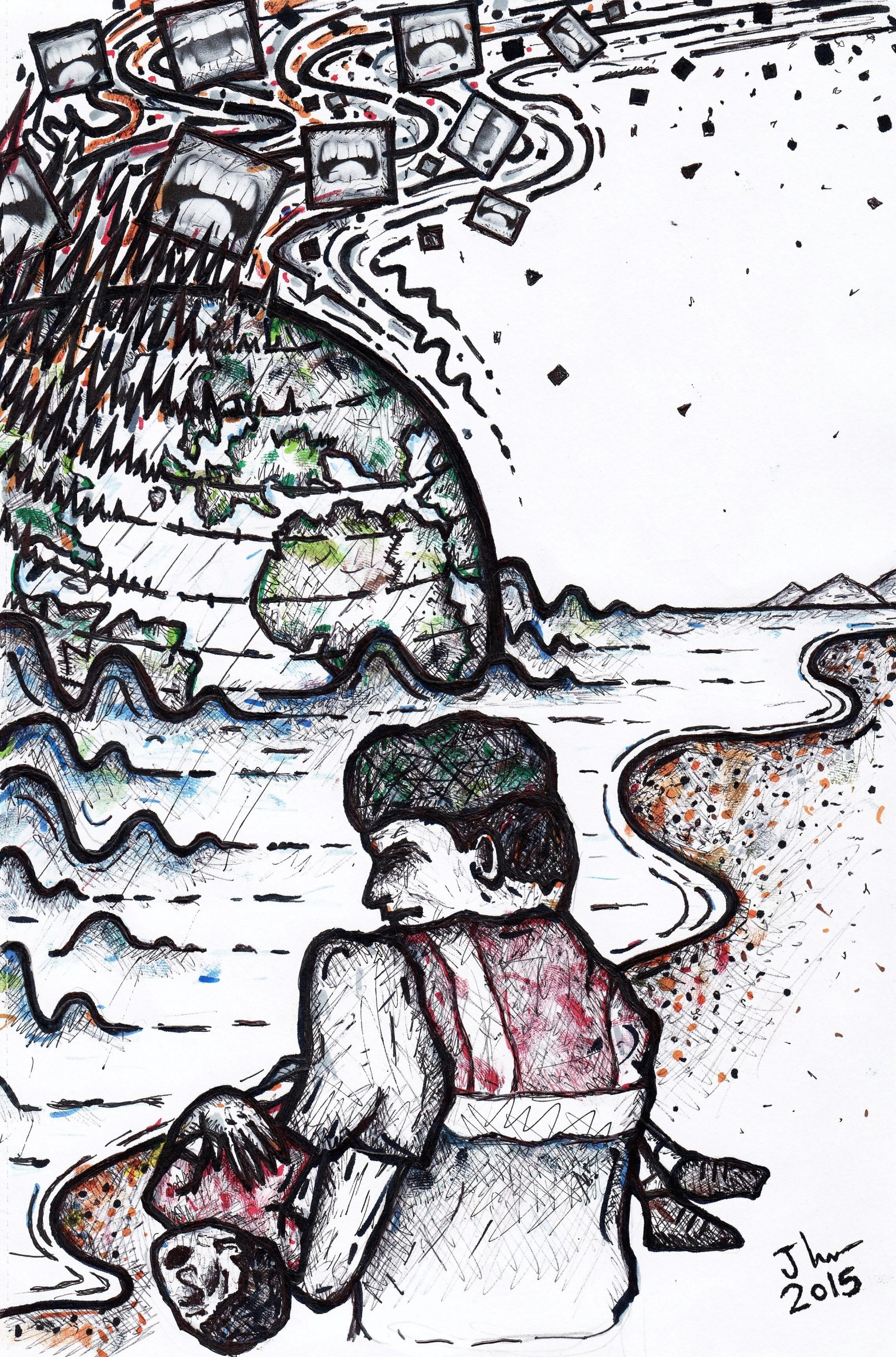 (2015, mixed media on paper) Admittedly a pretty naive work. But felt necessary.