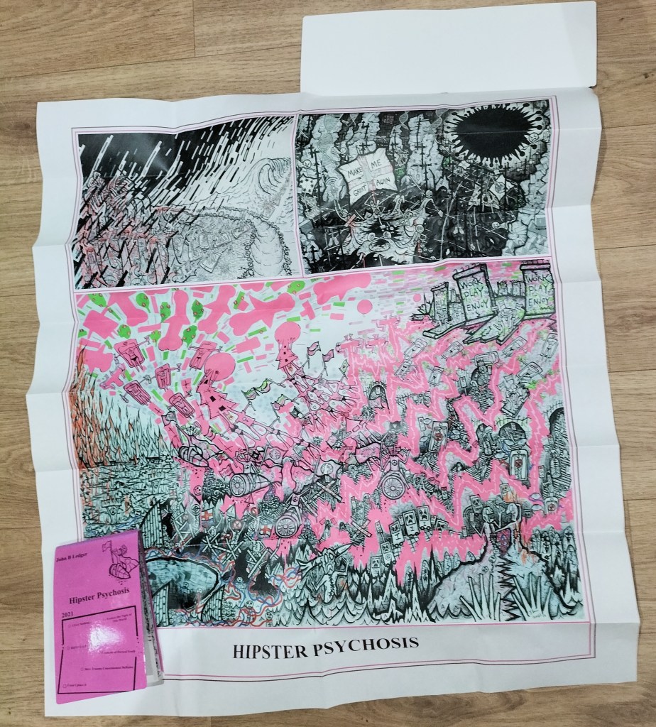 I produced 15 limited edition copies of my map book prints ‘A Eulogy for a lost decade’ (2016/17), We Want to live’2019/2020) and 10 of ‘Hipster Pyschosis (2021)’ between 2020 and 2022. I am aiming to release a new map book print based on both older works and more recent works during the next year. If you are interested in these I am contactable on ‘johnledger1984@gmail.com’.