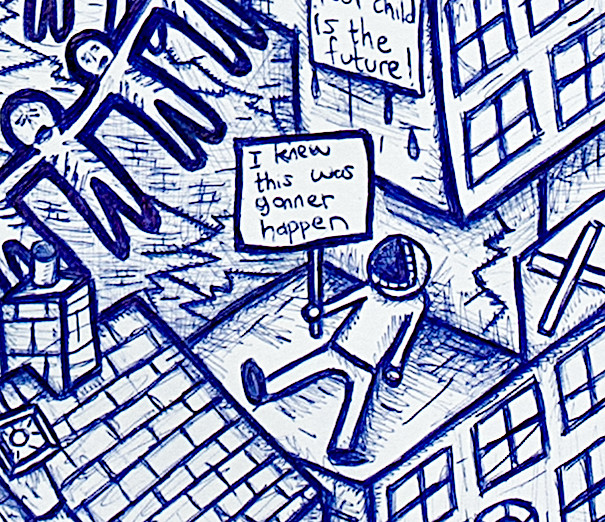 This is ‘NEW BRUTALITY’ Sorry for being trapped in the 20th century dealing with the 21st. And sorry for being unable to make any sense whatsoever – locked as we are inside the maddening house, where a ‘just do it’ Californian approach to life has left us all burnt out people on a burning planet. DeepContinue reading “‘NEW BRUTALITY’ (2024, mixed media on paper)”